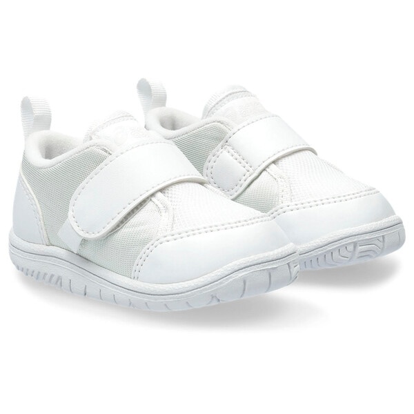 約1歳から3歳の幼児向けに展開する「BABY」シリーズ。保育園などの室内履きや、リトミックなど屋内の教室で履ける上履きです。扇形のつま先部分は足ゆびをのびのびと動かすことができ、踏ん張りやすいのが特徴。インナーソールには抗菌・消臭効果のあるシャインアップ、汗をすばやく吸収・拡散してドライ感を保つウォーターマジックを採用。靴の中を快適に保ちます。脱ぎ履きがしやすい1本ベルトタイプで、アッパーの甲の部分には通気性にすぐれたラッセルメッシュを使用しています。アウターソールは外履きも可能なグリップ性や耐久性を備えています。