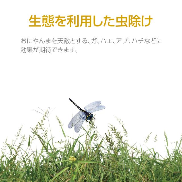 【生態を利用した虫除け】おにやんまを天敵とする、蛾、ハエ、アブ、蜂などに効果が期待できます。