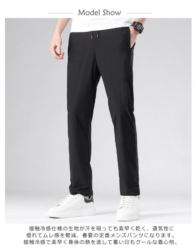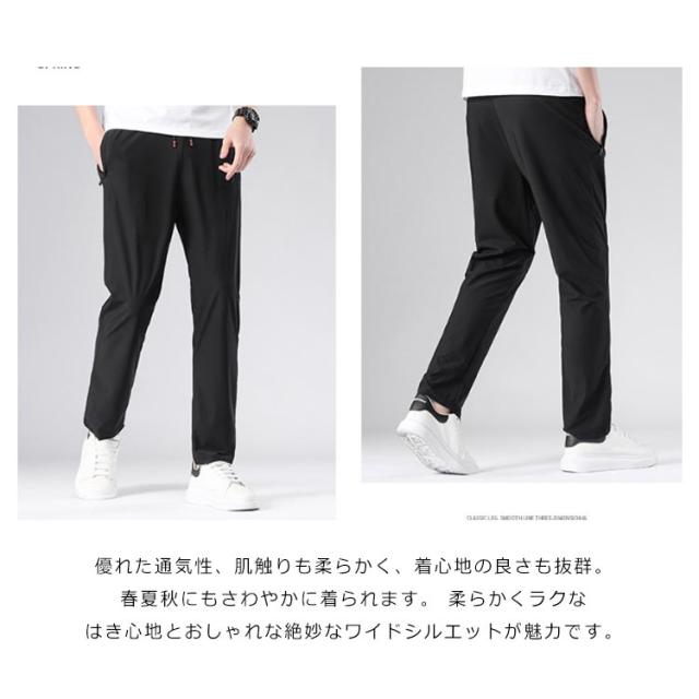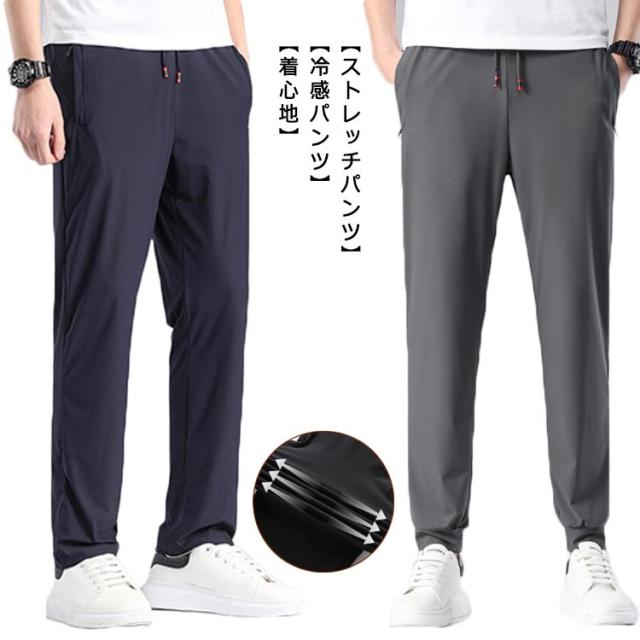 メンズ アイスシルクパンツ 接触冷感 ロングパンツ スポーツパンツ 冷感 パンツ 無地 速乾 軽量 夏 トレーニングパンツ 薄手 通気 ストレッチ 伸縮 ストレッチパンツ 涼しい 夏 春 秋 涼感パンツ カジュアル 大きいサイズ 黒 グレー ネイビー 送料無料 L-7XL