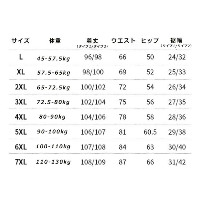 | サイズ | L XL 2XL 3XL 4XL 5XL 6XL 7XL |