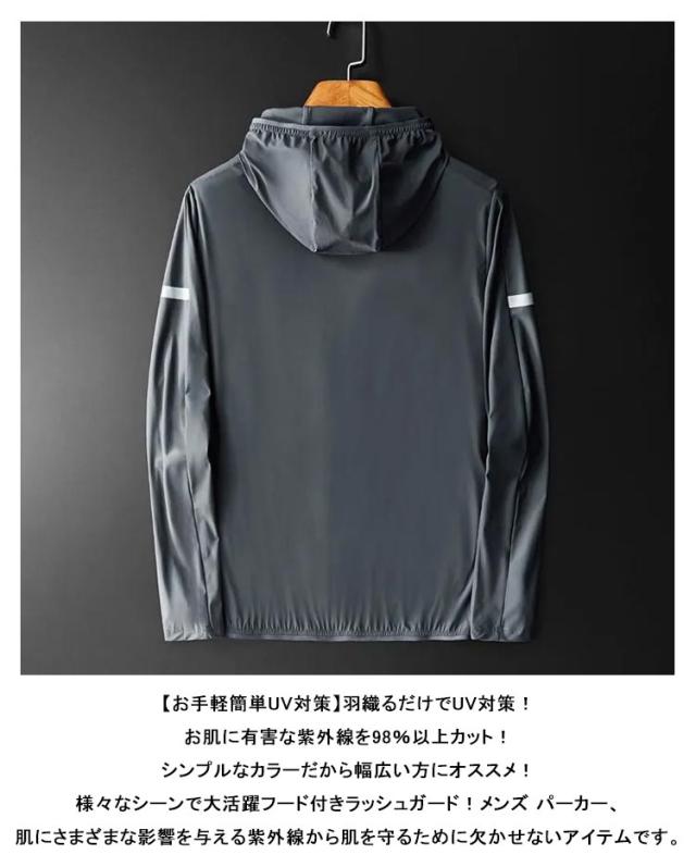 UVカットパーカー ジップアップ 薄手 メンズ フード付き 吸汗速乾 通気性 おしゃれ 冷感 涼しい 長袖 夏用 撥水 大きいサイズ ラッシュガード 紫外線対策 日焼け防止 蒸れにくい ランニング ゴルフウェア アウトドア