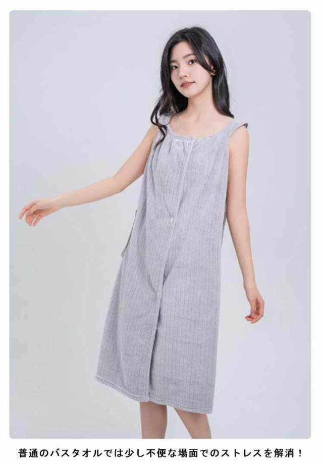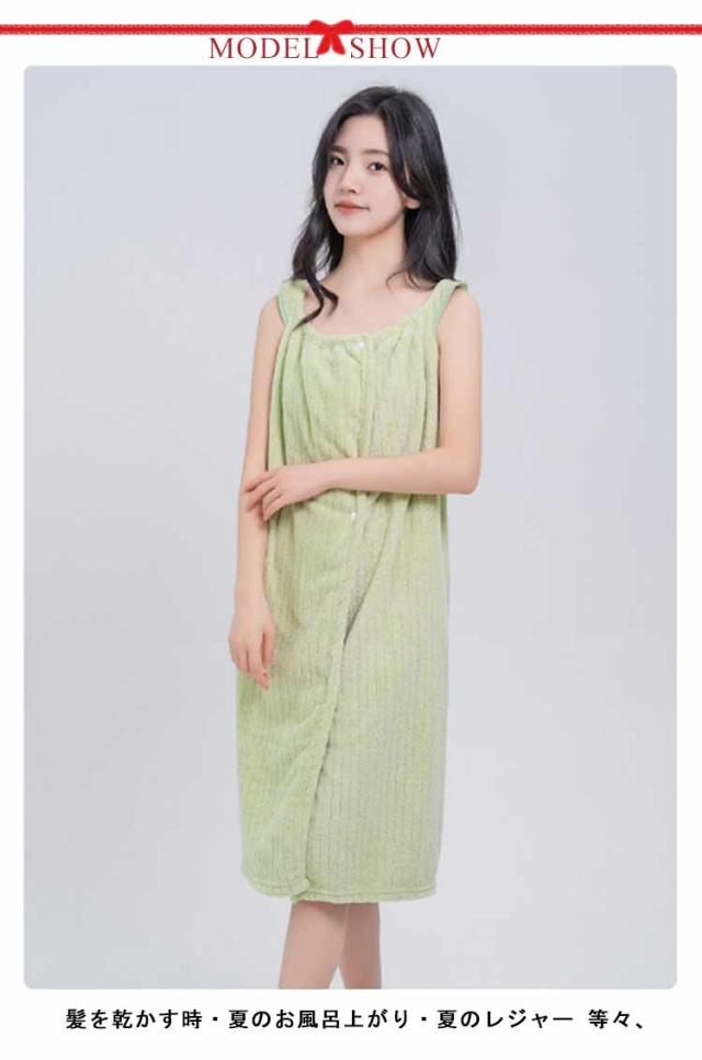 | ワンピースの様に着れる、バスタオル。 普段使いはもちろん、 レジャーシーンやジムなど幅広いシーンで活躍してくれる便利アイテム◎ 腕を通して、くるっと巻いてボタンを 2か所止めるだけでバスタオルが着れちゃいます。 ポケットが付いているので、 ヘアクリップやゴムなどを入れるのに便利。 髪を乾かす時・夏のお風呂上がり・夏のレジャー 等々、 普通のバスタオルでは少し不便な場面でのストレスを解消! | |
