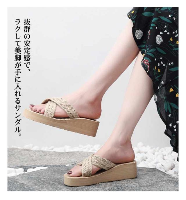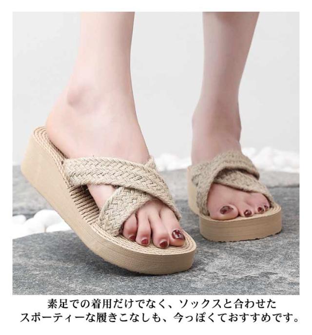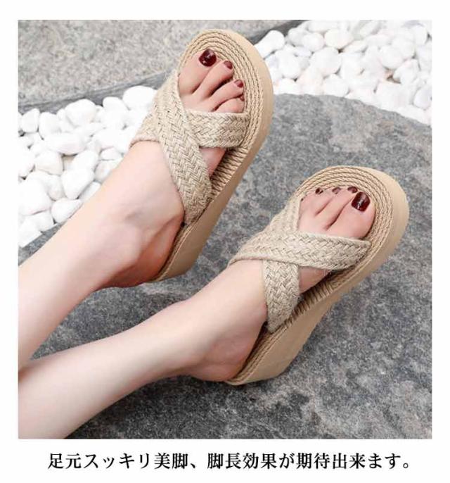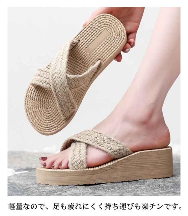 スリッパ 厚底 ビーチサンダル レディース ロープ風 リネン風 大人 おしゃれ 女性 スリッパ ウェッジソール 歩きやすい 履きやすい 疲れない 美脚 おしゃれ カジュアル 旅行 海 サボサンダル サマーシューズ 韓国ファッション
