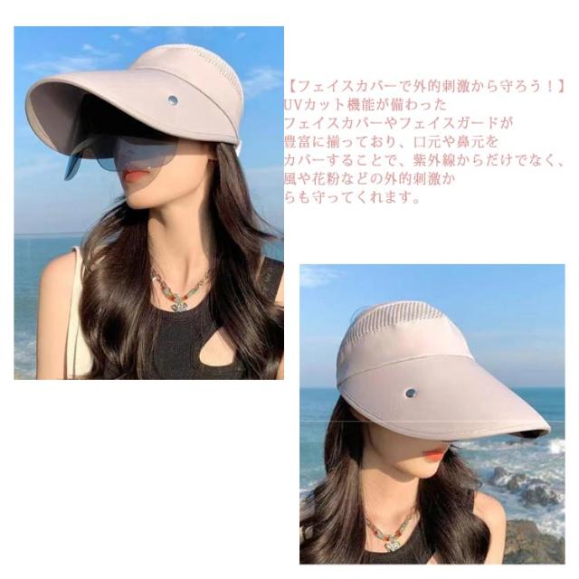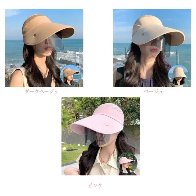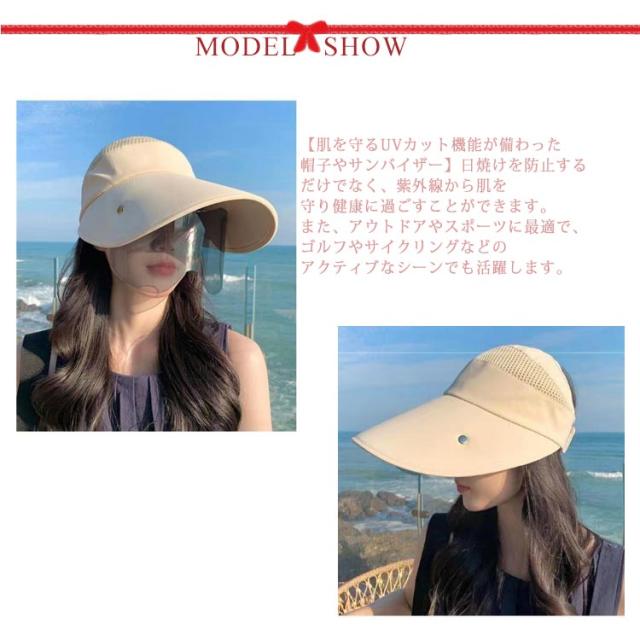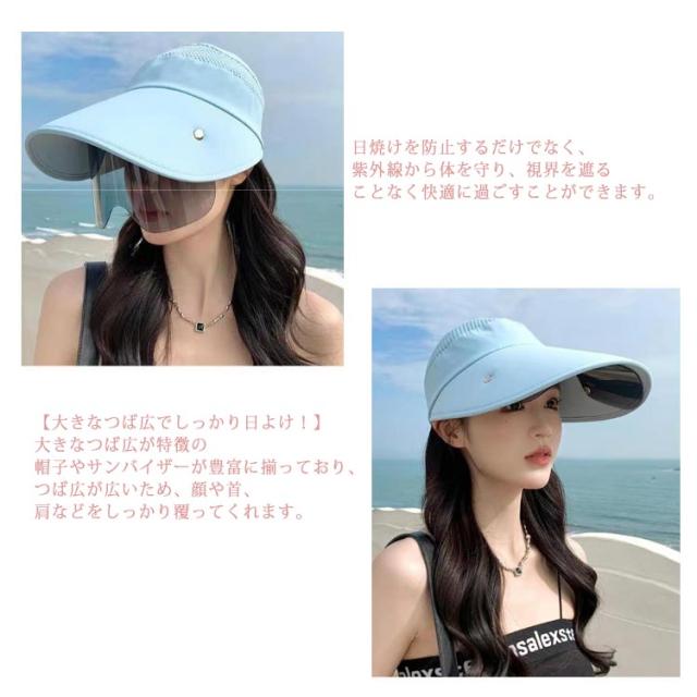 サングラスとサンバイザーが一体になった! uvカット帽子 レディース サンバイザー 日よけ 帽子 ひんやり ゴルフウェア つばひろ帽子 日焼け止め対策 小顔効果 あごひも付き アウトドア 熱中症対策 農作業
