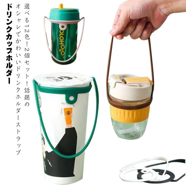 2個セット ドリンクカップホルダー ドリンクホルダー カップホルダー ドリンク ホルダー ストラップ ドリンクストラップ テイクアウト ドリンク ドリンクホルダー 持ち歩き シリコン製 水筒カバー ボトルストラップ 持ち運び おしゃれ 可愛い インスタ映え