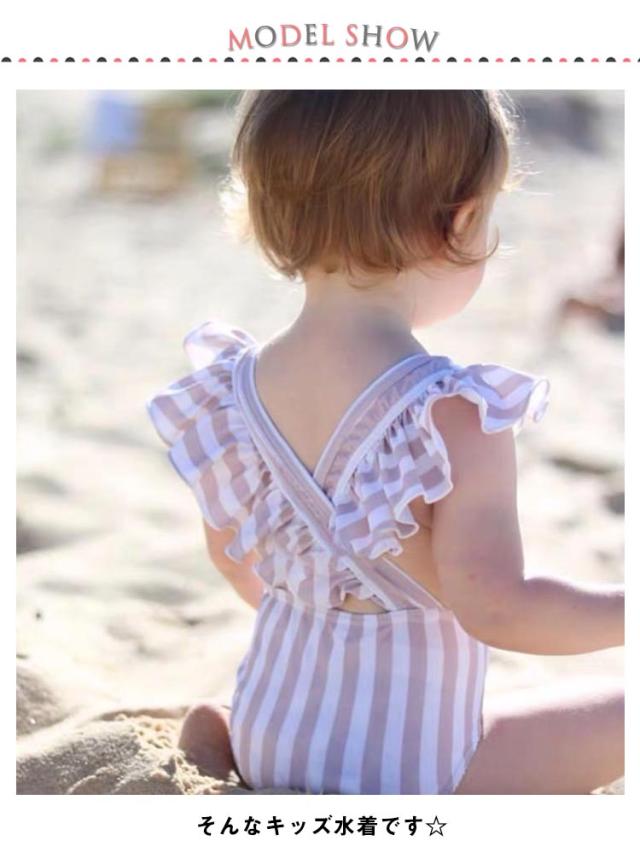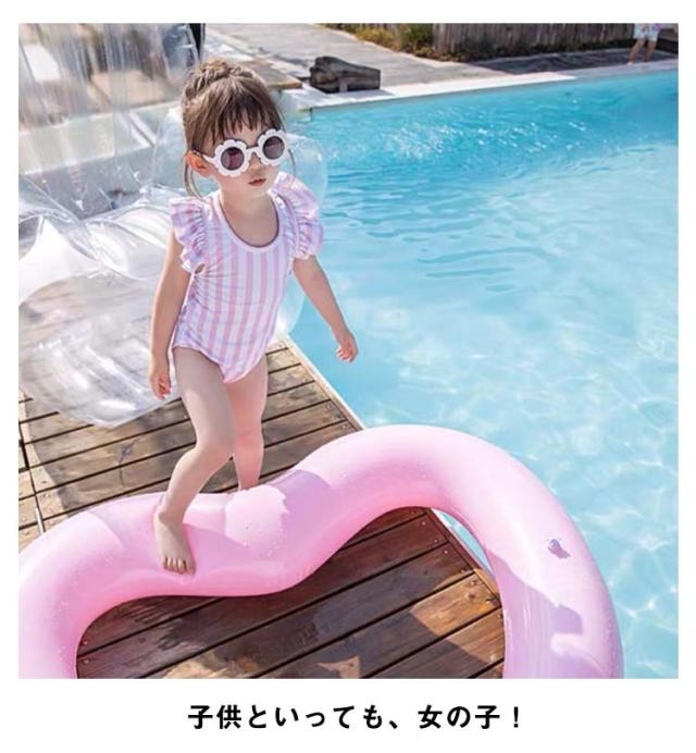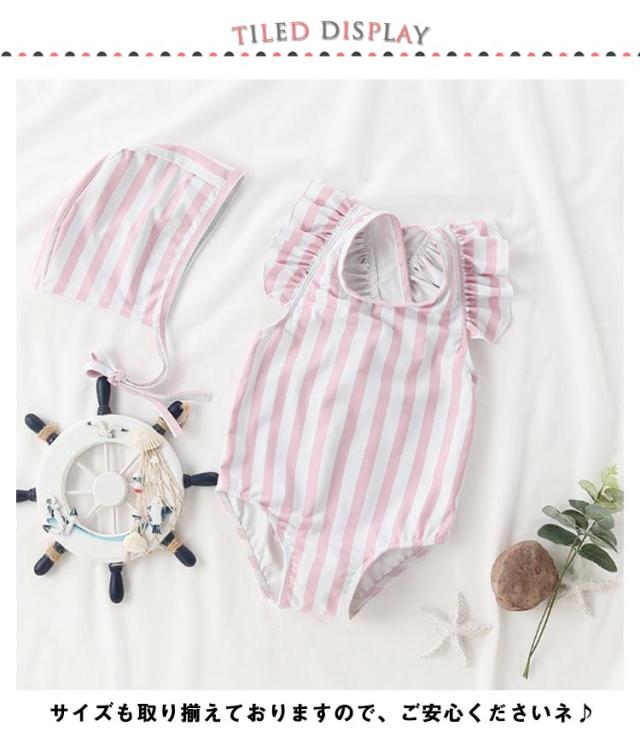 SNS人気!子供 水着 女の子 水着 キッズ 水着 ワンピース 帽子 女児 ストライプ スクール 子供用水着 プール 可愛い ベビー こども 女児 みずぎ 可愛い 赤ちゃん プール フリル おすすめ 90 100 110 120 130 140cm 送料無料