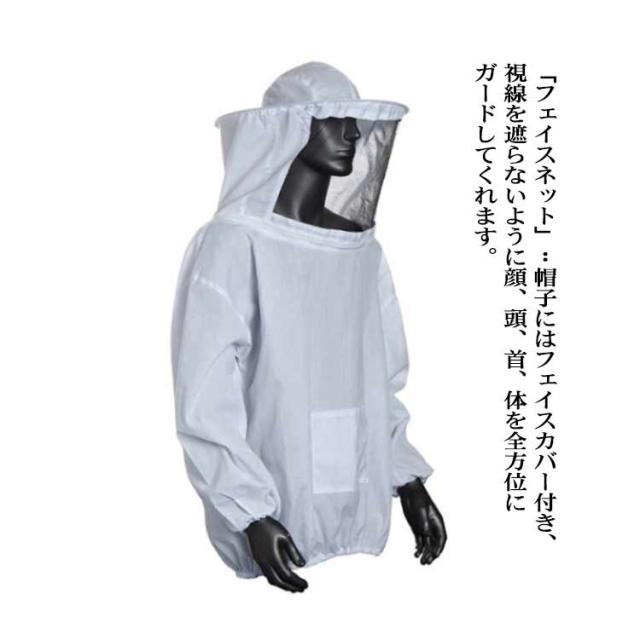 養蜂 防護服 ハチ防護服 養蜂用 上着 帽子付き 養蜂服 蜂 蚊 虫よけ 防護具 養蜂ジャケット 軽薄 通気 作業服 園芸 草刈り ガーデニング 防護アクセサリー 男女兼用 脱着簡単 送料無料