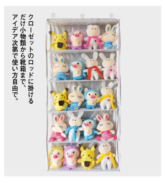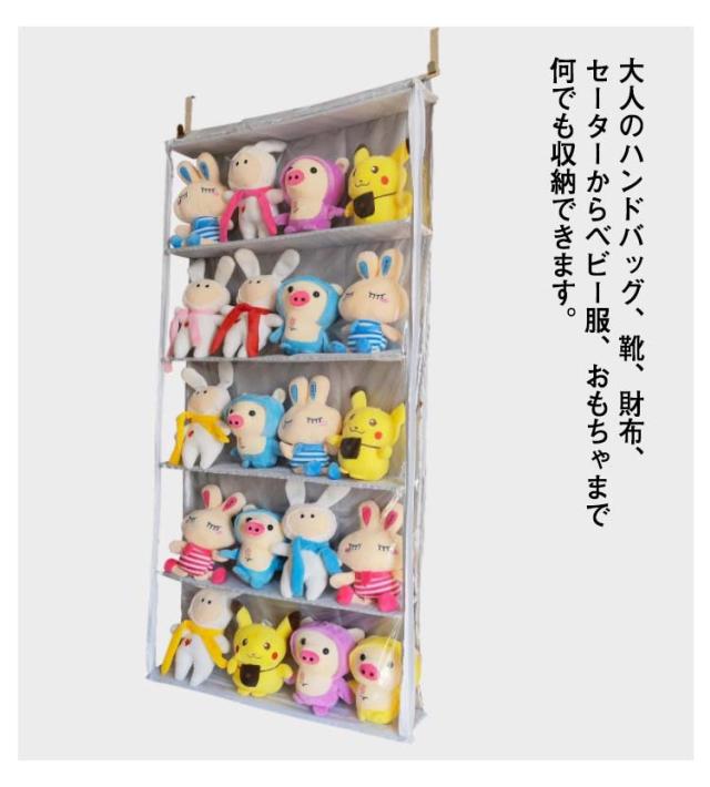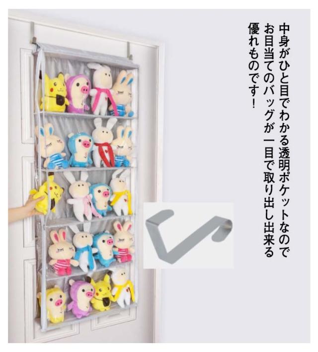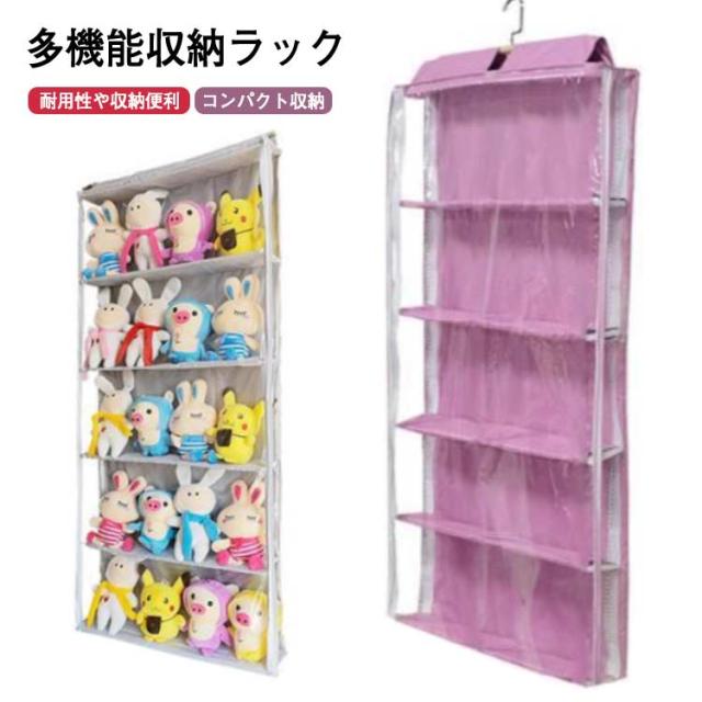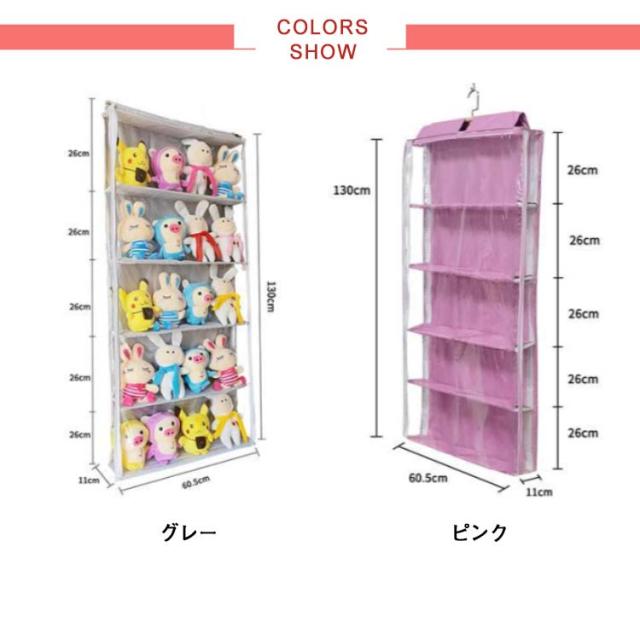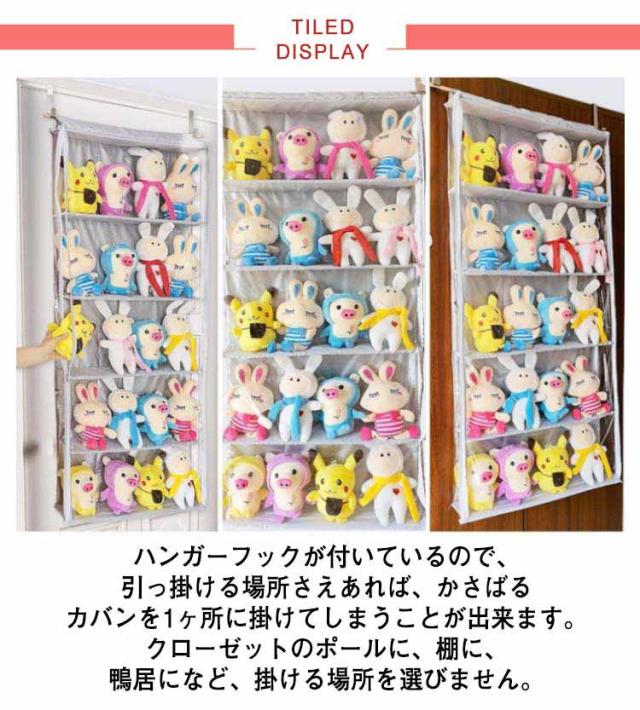 透明 ぬいぐるみウォールポケット 5段 収納ボックス 吊り下げ コレクション ディスプレイ ぬいぐるみ 収納ケース コレクションケース 大容量 バッグ収納 壁掛け クリア 透明窓付き 見せる収納
