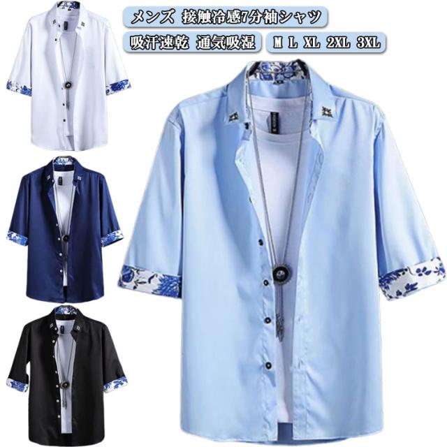 | 【メンズ 接触冷感7分袖シャツ】 【M L XL 2XL 3XL】 【吸汗速乾 通気吸湿】 | |