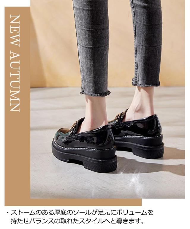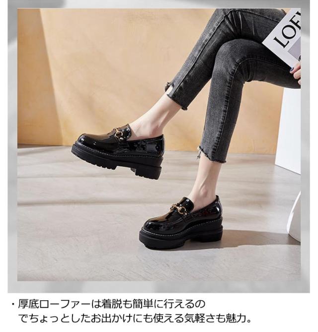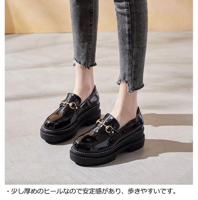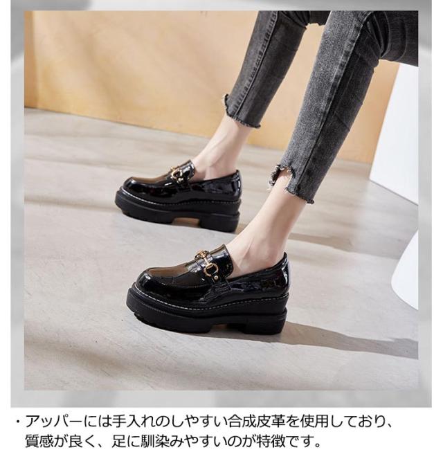 厚底 ローファー パンプス ローヒール レディース ビット 飾り 歩きやすい 履きやすい 疲れない 痛くない トレンド 7cmヒール プラットフォーム 春夏 通勤 通学 革靴 エナメル ハレの日 可愛い おしゃれ きれいめ カジュアル 合皮 全2色
