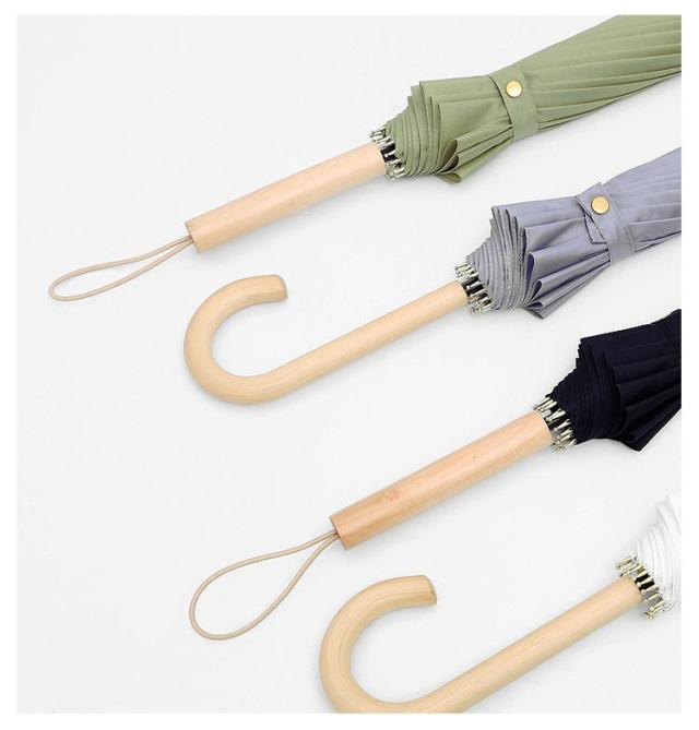 | 【レザー / 木製カーブ / 木製ストレート の3種類 ハンドル選べる!!】 ・高級感ある色味、スタイリッシュなデザイン ・16本の親骨は軽くて高強度なグラスファイバーを採用 ・片手で簡単に開けるジャンプ式 ・濡れない安心直径108cmの大きさ | |