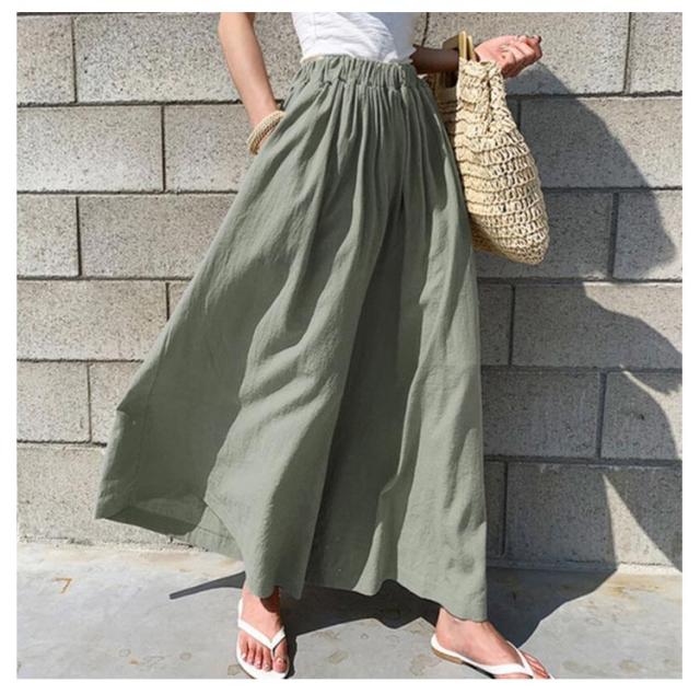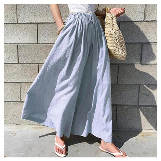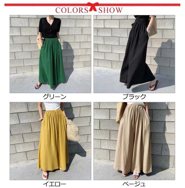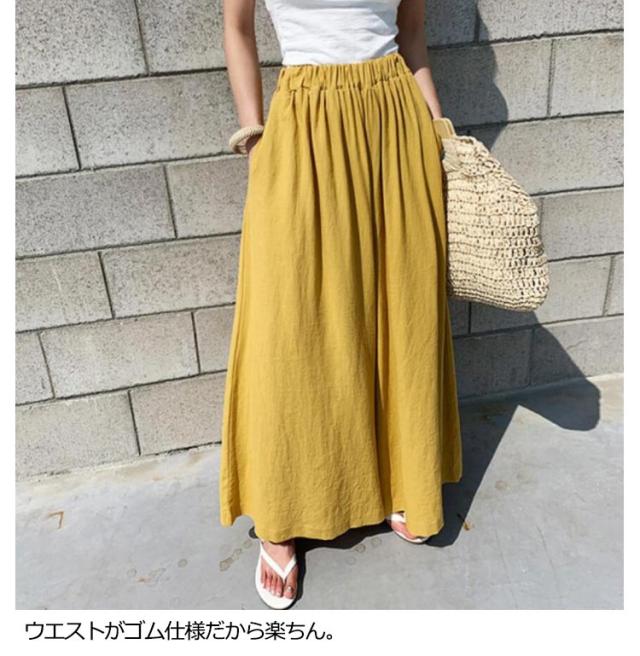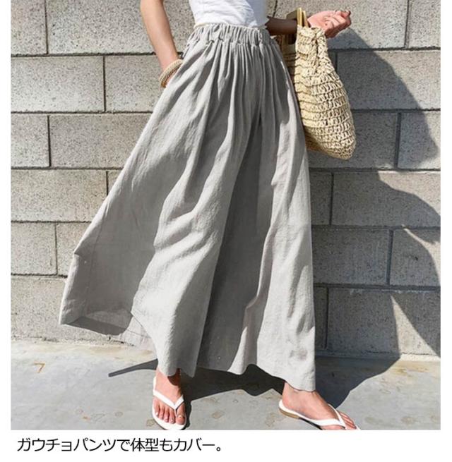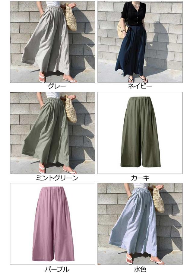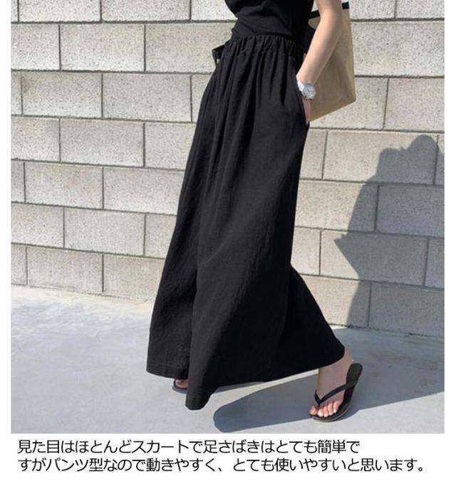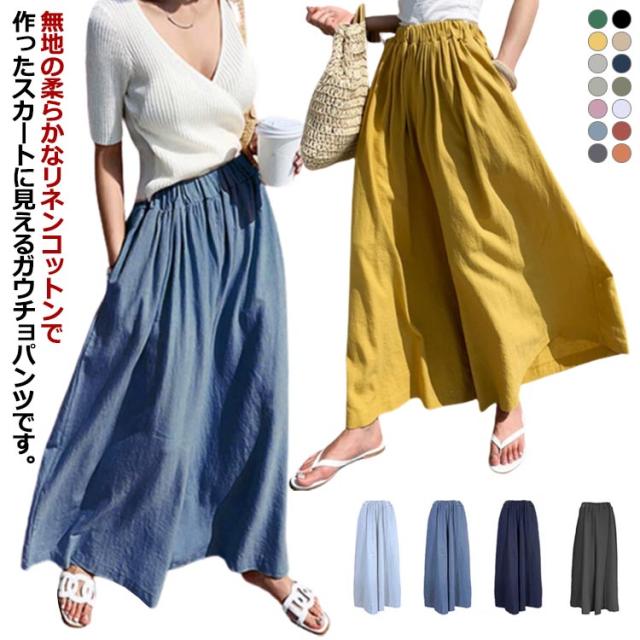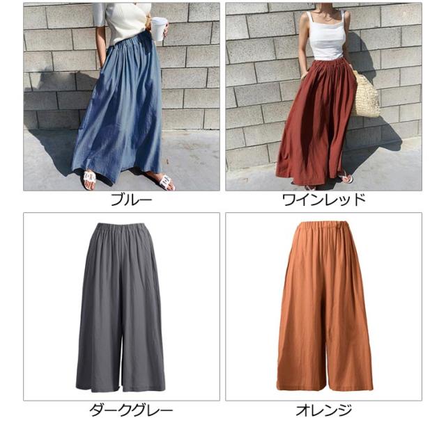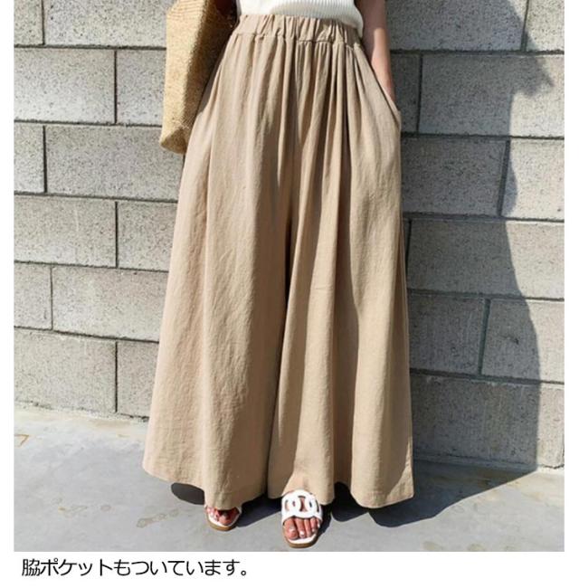 綿麻 パンツ ワイド レディース リネン ワイドパンツ ガウチョパンツ ガウチョ ロング ギャザー入り 春 夏 秋 リネンスカート フレアスカート 涼しい 吸汗速乾 ハイウエスト ゆったり 体型カバー ポケット付き 40代 50代 30代 大人