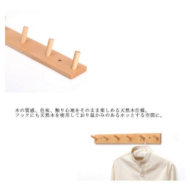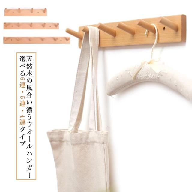 ウォールフック 木製 壁掛けフック 6連 5連 4連 コートハンガー 強力 ハンガーフック ハンガーラック コート 洋服 かばん 帽子掛け 取り付け簡単 玄関 リビング トイレ 洗面所 キッチン 寝室 壁掛け フック 省スペース インテリア 収納 おしゃれ ナチュラル 北欧 賃貸OK