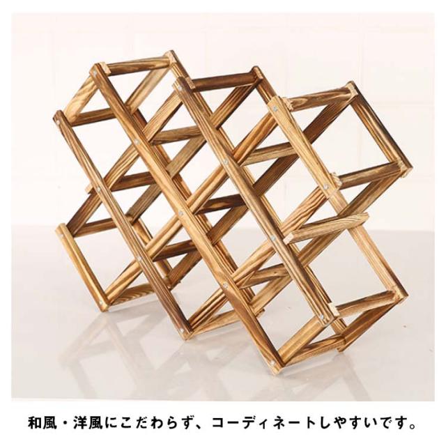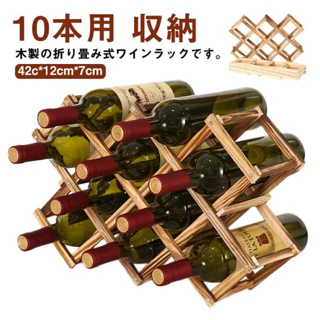 木製 折りたたみ式 ワインラック 10本用 木製 ホルダー ワインボトル ラック ワイン棚 シャンパン ボトル スタンド 折り畳み 収納 コンパクト インテリア 見せる収納 省スペース おしゃれ ホーム キッチン キッチン用品