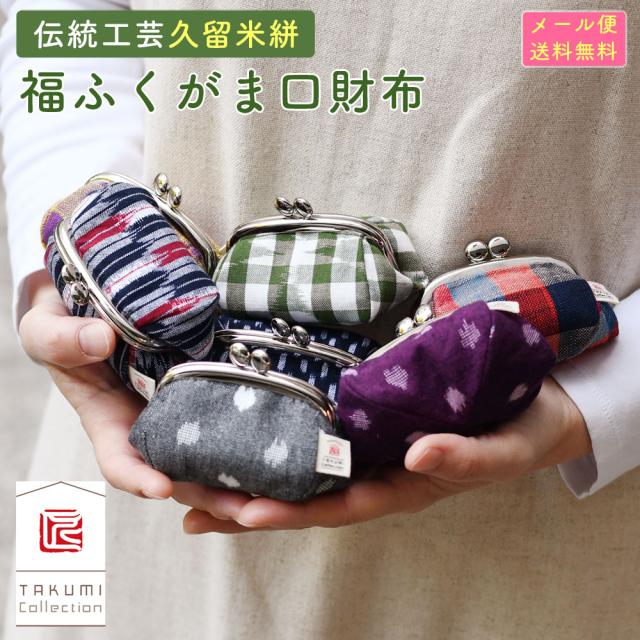 【メール便送料無料】久留米絣 福ふくがま口財布 がまぐち財布 広マチ 小銭入れ コインケース TAKUMI Collection 匠コレクション 日本製 ピルケース アクセサリー 和小物 和柄 和雑貨 メイドインジャパン 国産 レディース 女性用 婦人用 ユニセックス 男女兼用 ふっくら