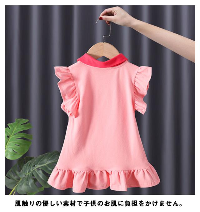 女の子 ワンピース イチゴ ワンピース フリルスリーブ 半袖 フレアワンピース 子供ワンピース ポロシャツ襟 ポロシャツ ワンピース ワンピース キッズ ワンピース 夏 ベビー ワンピース 女児 ガールズ フレア袖 夏ワンピース 送料無料