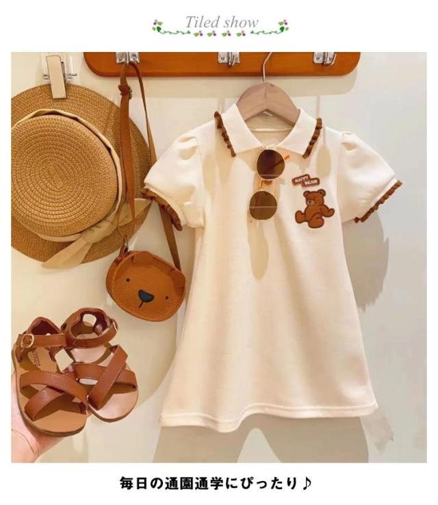 ポロシャツ襟 ポロシャツ ワンピース くまさん 女の子 ワンピース 半袖 フレアワンピース 子供ワンピース キッズ ワンピース 夏 ベビー ワンピース 女児 ガールズ 夏ワンピース 子供ドレス 子供服 フォーマル 入園式 発表会 送料無料