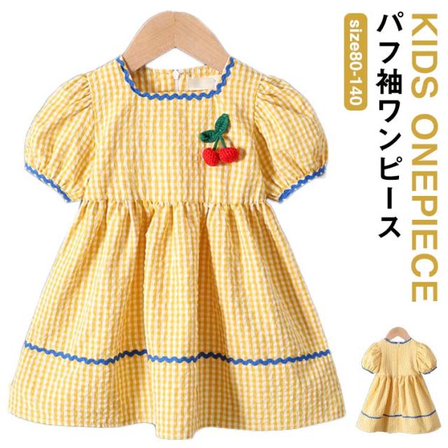 チェリー 女の子 ワンピース 半袖 キッズ ワンピース 子供 ワンピース パフスリーブ 夏ワンピース 女の子 ドレス 子供ドレス フレアワンピース パフ袖 夏 ベビー ワンピース ガールズ 子供服 フォーマル ワンピース パーティードレス 演奏会 発表会 入園式 送料無料