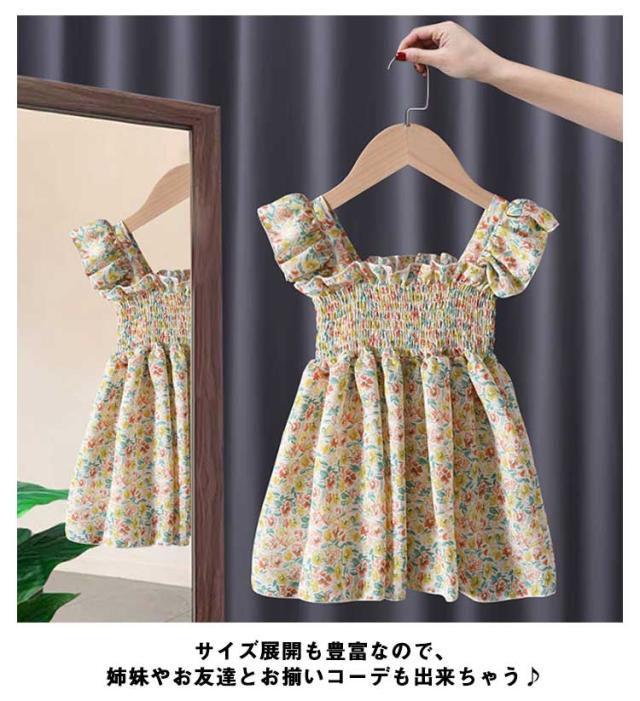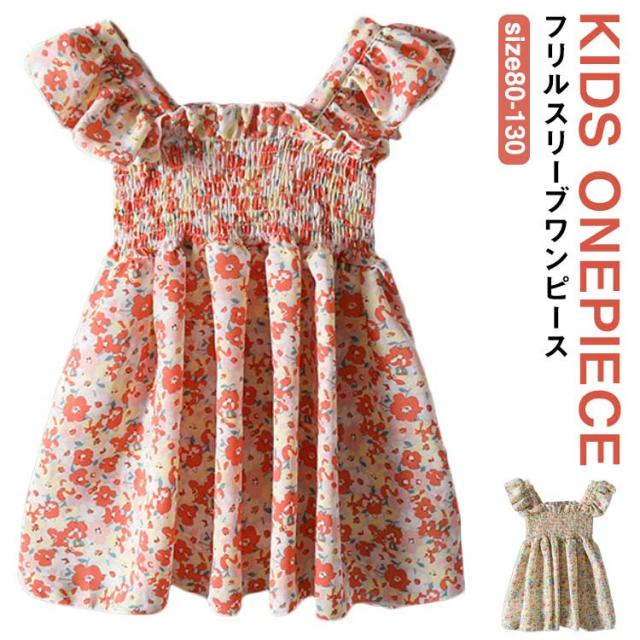 シフォン ワンピース 花柄 キッズ ワンピース 子供 ワンピース 子供ドレス フレアワンピース 夏ワンピース 女の子 ワンピース フリルスリーブ ワンピース ノースリーブ 夏 ベビー ワンピース 子供服 送料無料