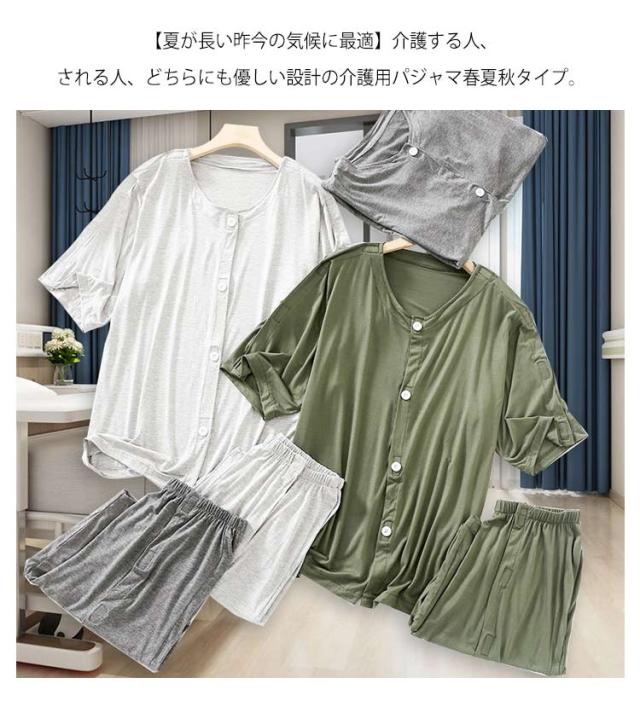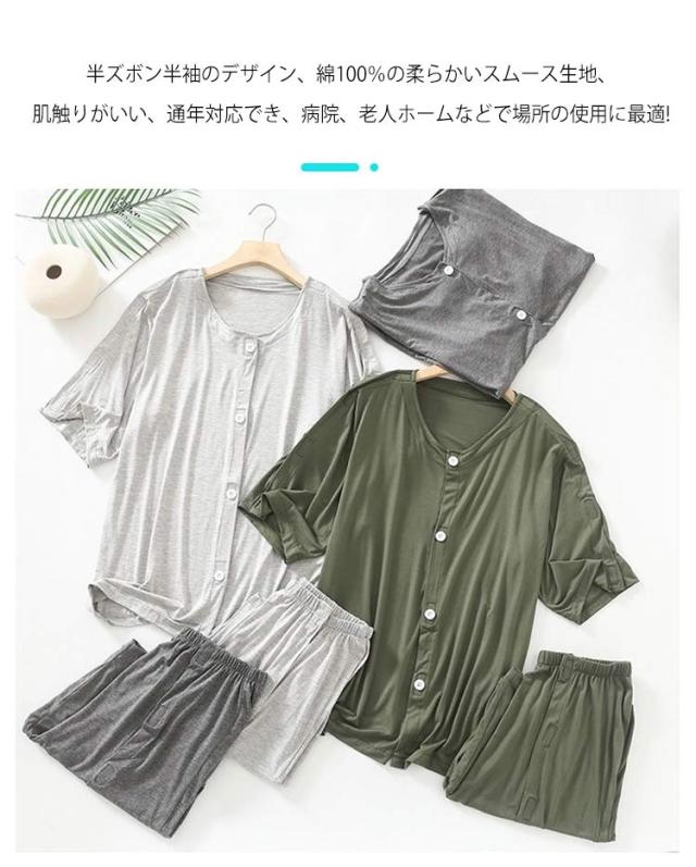 | 【全開パジャマ】見た目は普通なパジャマですが、便利なワンタッチテープがついてます。点滴、検温や着替え時の開閉が簡単する。要介助者に安心です。 【介護にやさしく】着替えが困難な方をサポートする全開介護パジャマです。オムツ替えはもちろん入浴後の着替えもこのパジャマなら安心、快適です。 【夏が長い昨今の気候に最適】介護する人、される人、どちらにも優しい設計の介護用パジャマ春夏秋タイプ。半ズボン半袖のデザイン、綿100%の柔らかいスムース生地、肌触りがいい、通年対応でき、病院、老人ホームなどで場所の使用に最適! 【快眠サポート】 通気性に優れたコットンが、ムレずにサラサラな寝心地を実現、オーガニックな安らぎで、快眠をサポートします。 | |