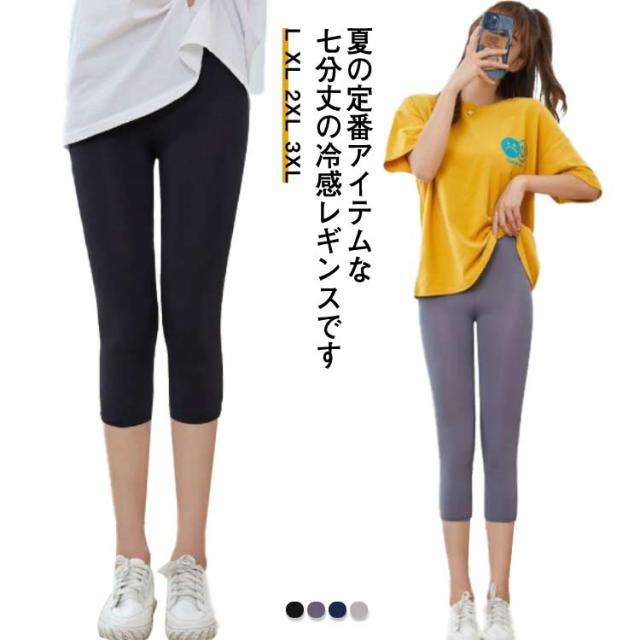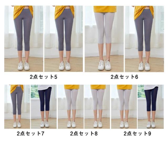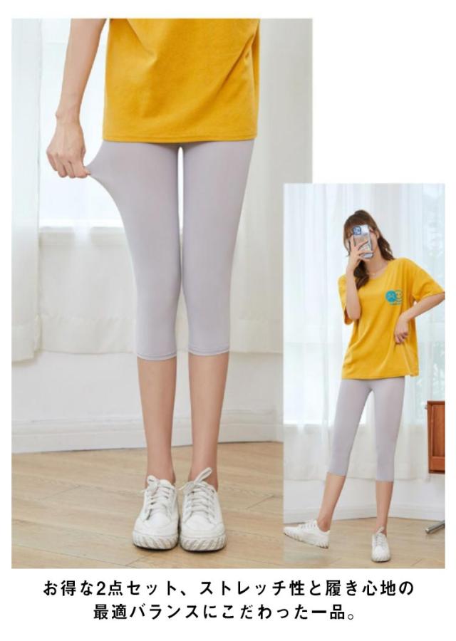 レギンス 夏用 涼しい レディース 薄手 7分丈 2点セット 大きいサイズ アイスシルクレギンス ストレッチパンツ アイスシルクパンツ 冷感パンツ 無地 涼しい スキニーパンツ スパッツ インナー ルームウェア 七分丈 L XL 2XL 3XL