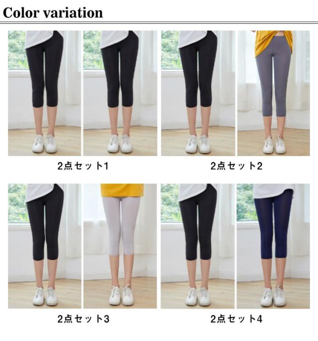 | 夏の定番アイテムな七分丈の冷感レギンスです。 お得な2点セット、ストレッチ性と履き心地の最適バランスにこだわった一品。 シンプルなデザインだからデイリーに着回ししやすく多様なスタイルと相性バッチリです。 Tシャツやワンピースと合わせてもおすすめ。 | |