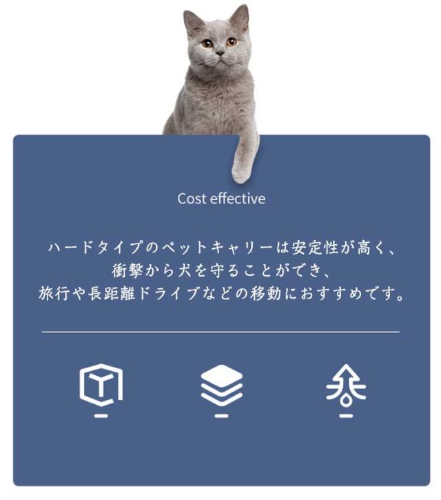 | 飛行用キャリーとして最適です♪ 飛行機、バス、電車、新幹線など交通機関での移動にドッグキャリーやキャットキャリーは必須。 オールシーズン使える快適なペット用のトラベルキャリーで猫ちゃん・ワンちゃんもくつろぎ時間を過ごせそう。 窓からワンちゃん・ネコちゃんが見える犬用・猫用ペットバッグ。 通院中のドライブや、病院でイヌやネコが心配なときも中の様子をうかがえるので安心です。 分解、組み立ても簡単。PP素材製なので水洗いできて、清潔にお使いいただけます。 上部分はカチッと簡単にロックできるので安全です。底部には滑り止めが付いているので安定感があります。 ハードタイプのペットキャリーは安定性が高く、衝撃から犬を守ることができ、旅行や長距離ドライブなどの移動におすすめです。 目的地に着いた後は、ハウスやサークルとしても使えるのでとっても便利♪ | |