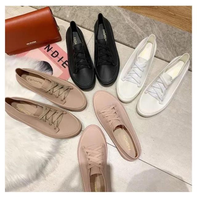 | 雨でも晴れでも使えるレインシューズ♪ 柔らかな素材で屈曲性がよく動きやすい おしゃれなスニーカーデザインでどんなスタイルにもぴったり。 一体型の作りで、縫い目は全てフェイクステッチだから浸水の心配も無し! マットな質感とシンプルなカラーのレインスニーカーです。 | |