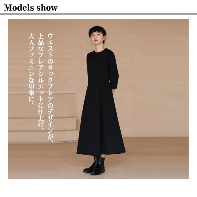 | シックで落ち着いたデザインのブラックフォーマル ワンピースです。 ウエストのタックフレアのデザインが、上品なフレアシルエットに仕上げ、大人フェミニンな印象に。 1枚でコーディネートが完成。 シンプルなデザインなので、冠婚葬祭やパーティー、イベント、お呼ばれなど様々な場面で、オールシーズン活躍できる1着です。 | |