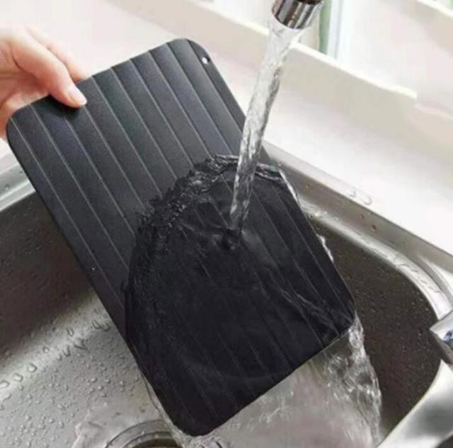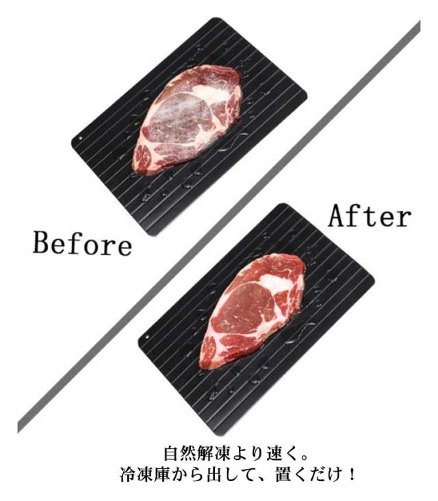 | 自然解凍より速く。冷凍庫から出して、置くだけ! 清潔感があり、美しくて頑丈な高品質アルミ素材を採用しています。 放熱性に優れ、高速な熱交換を通して急速解凍できるプレートです。 ひっくり返すとより早く解凍できます。 使いやすく、肉をボードに置いたり、水や電気を必要とせず、環境にやさしくエネルギーを節約します。 解凍中のバクテリアの繁殖を減らし、原材料の栄養と肉汁を保ちます。 自然な方法や電子レンジで肉を解凍より、ガス・電気も使用しないので安全、節電節約、経済的なエコ商品です。 プレートは簡単に清掃して再使用できます。収納に便利な吊り穴付。 | |