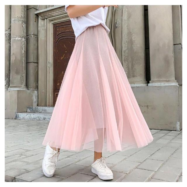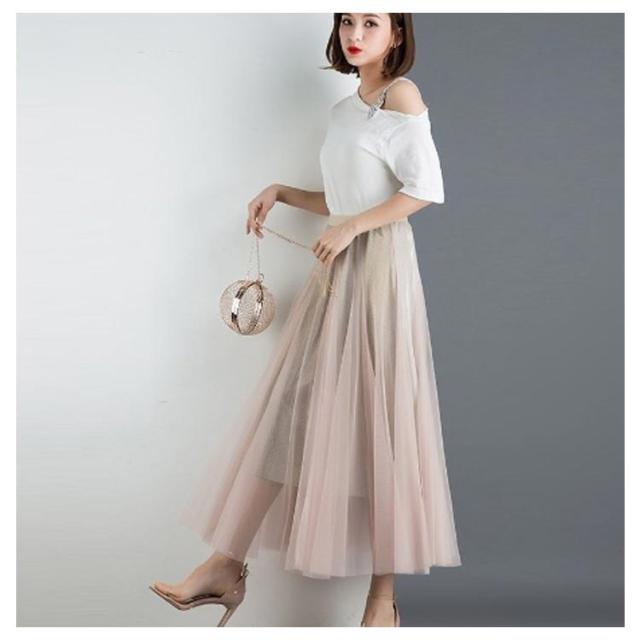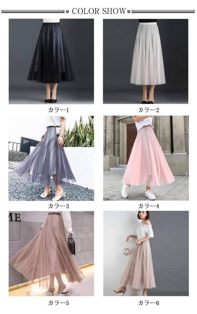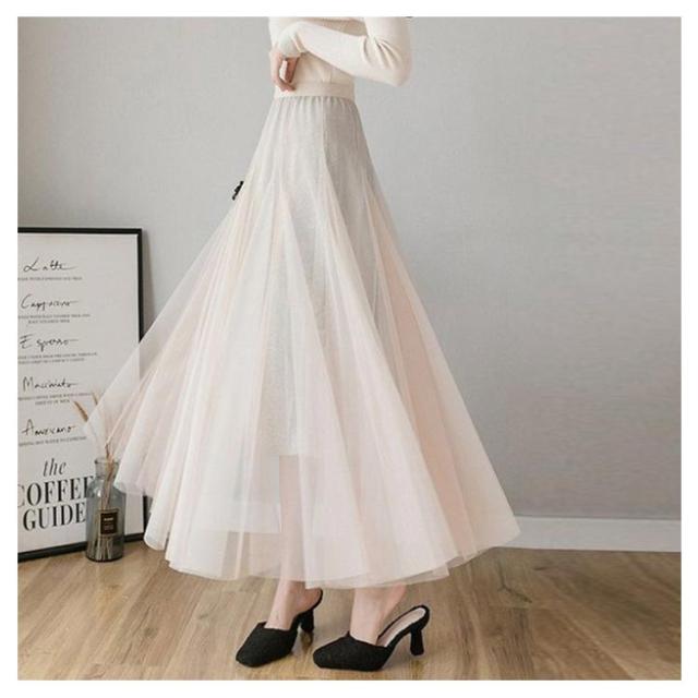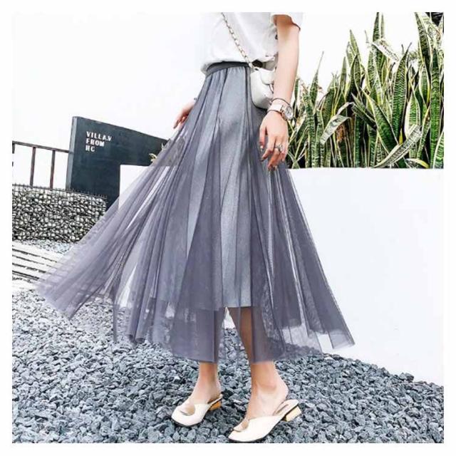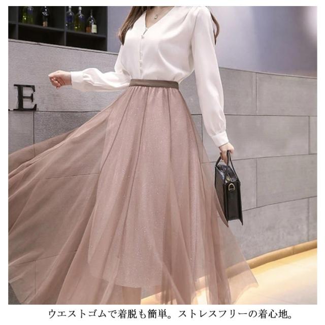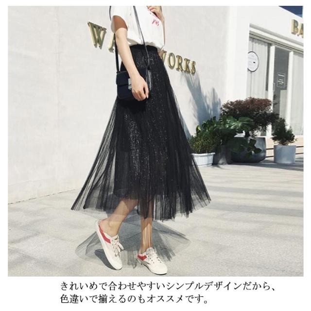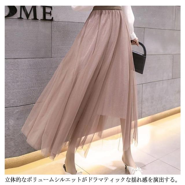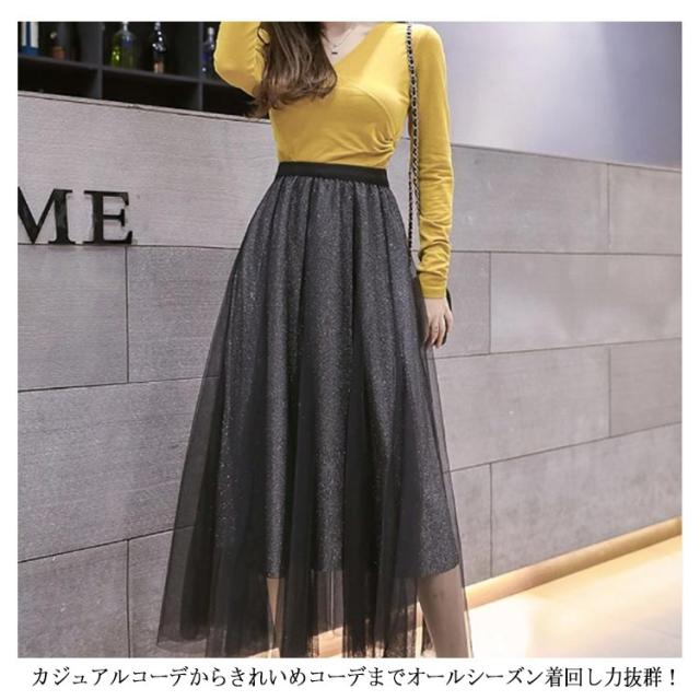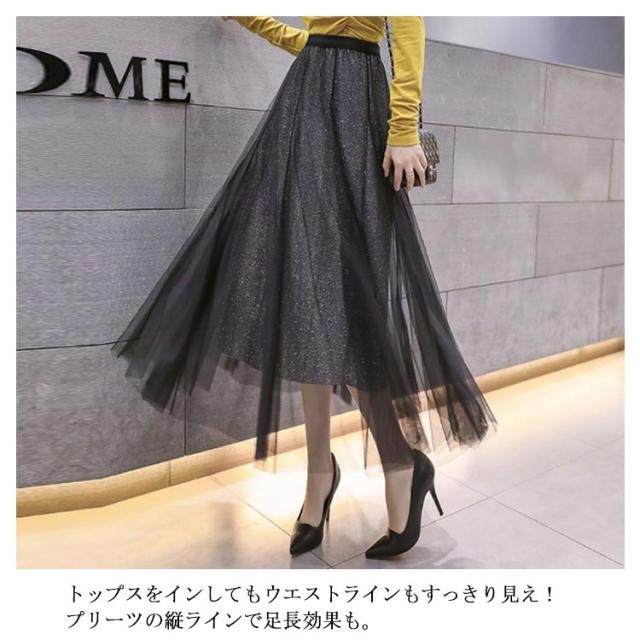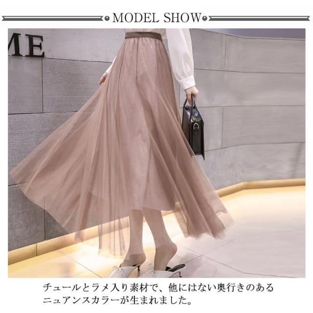 ラメ入り スカート チュールスカート ロングスカート フレアスカート チュチュスカート ミモレ丈 スカート Aライン ウエストゴム 夏 大人 かわいい おしゃれ ダンス衣装 キラキラ 全6色