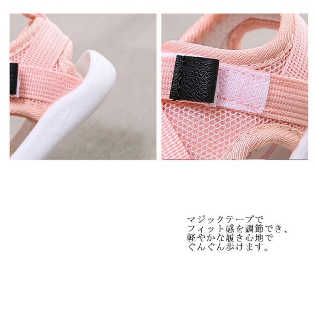 | メッシュ素材で通気性のよいベビーサンダル。 アッパーがつま先をしっかりガードして安心。 通気、速乾に優れたメッシュアッパーで、レジャーシーンに活躍する一足。 吸汗・速乾性に優れており、通気性もよいインナーソールを使用。 マジックテープでフィット感を調節でき、軽やかな履き心地でぐんぐん歩けます。 夏の外遊びやキャンプなどのアウトドアシーンで活躍するサマーシューズです。 | |