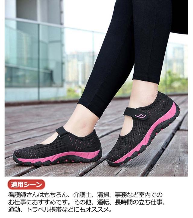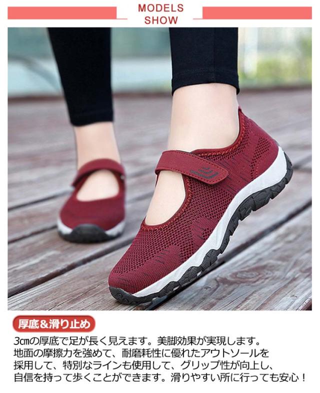 | 【厚底&滑り止め】3cmの厚底で足が長く見えます。美脚効果が実現します。地面の摩擦力を強めて、耐磨耗性に優れたアウトソールを採用して、特別なラインも使用して、グリップ性が向上し、自信を持って歩くことができます。滑りやすい所に行っても安心! 【滑り止め】地面の摩擦力を強めて、耐磨耗性に優れたアウトソールを採用して、特別なラインも使用して、グリップ性が向上し、自信を持って歩くことができます。滑りやすい所に行っても安心! 【快適な履き心地】柔らかいインソールを採用して、柔軟性が十分だけでなく、クッション性も持って、歩行運動の疲労を緩和するのに役立ちまして、中高年の女性がオススメです!減震機能があり、長く歩いても疲れにくいです。 【適用シーン】看護師さんはもちろん、介護士、清掃、事務など室内でのお仕事におすすめです。その他、運転、長時間の立ち仕事、通勤、トラベル携帯などにもオススメ。 | |