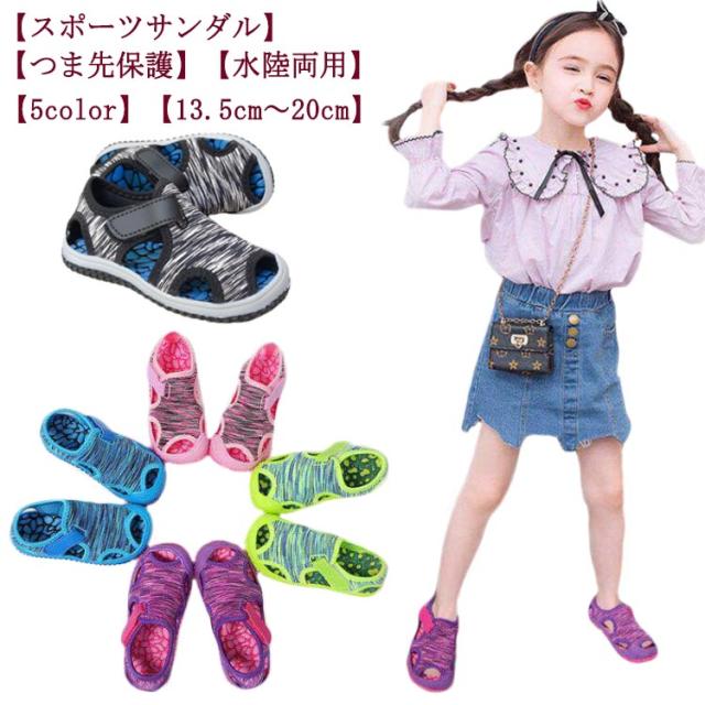 キッズ サンダル つま先ガード 水陸両用 スポーツサンダル 子供靴 ビーチサンダル マジックテープ 女の子 男の子 ベビー ベルクロ 赤ちゃん ジュニア スポーツ サンダル つま先保護 アクアシューズ 滑り止め 靴 水遊び 春 夏 マリンシューズ おしゃれ 軽量 海 川