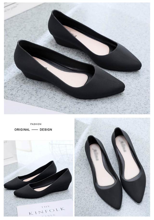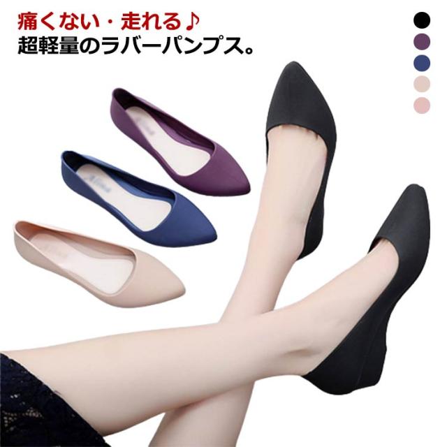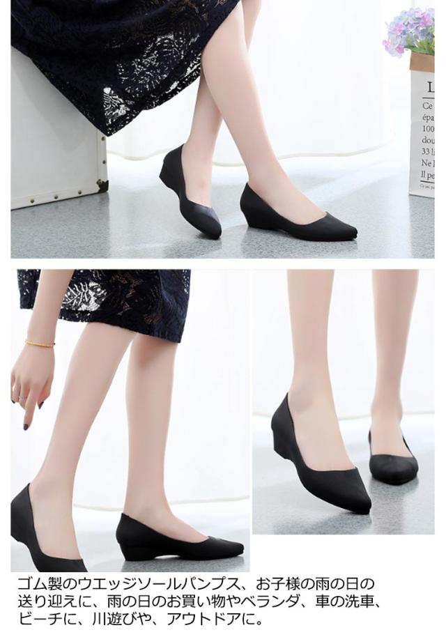 ラバーパンプス レインシューズ 走れる パンプス 防水 痛くない ウエッジソール 歩きやすい ポインテッドトゥ 軽量 雨の日 靴 防水 ママシューズ ローヒール ゴム製 黒 柔らかい 3cmヒール 送り迎え 参観日 通勤 梅雨対策 オシャレ 卒園式 入学式