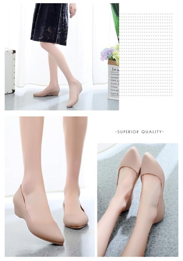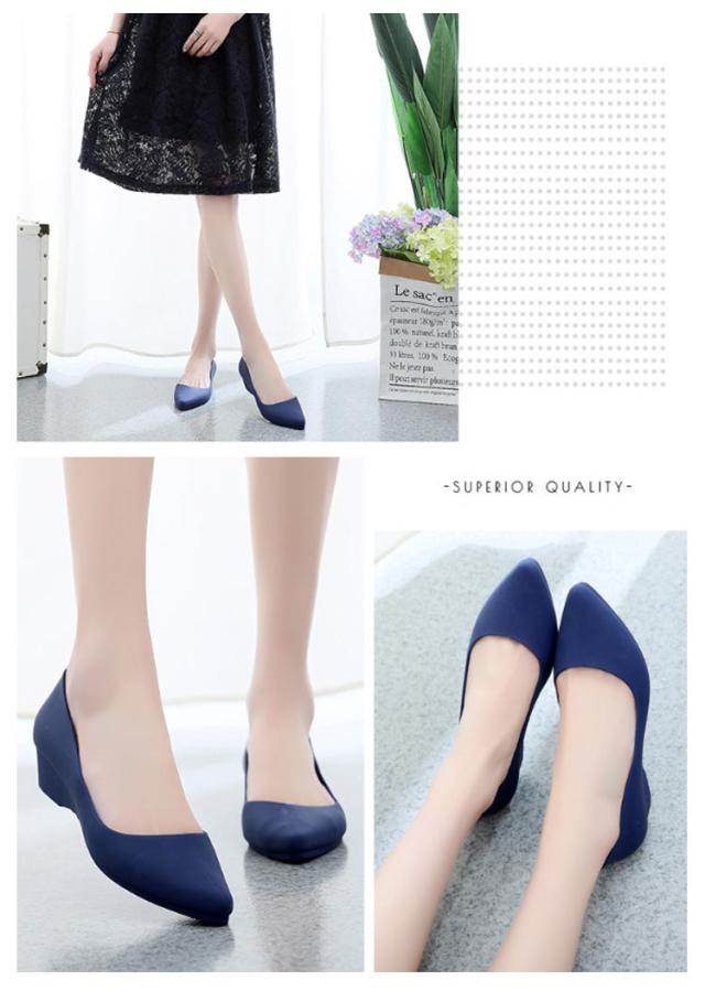 | 痛くない・走れる♪超軽量のラバーパンプス。 3cmの適度なヒール高。きちんと感は失わず、歩きやすさと軽快さがgood しなやかで柔らかな上質ゴムを使用し、疲れにくく、歩きやすい。 マットなカラーでパーティーや入学式、卒業式などフォーマルシーンもOK! ゴム製のウエッジソールパンプス、お子様の雨の日の送り迎えに、雨の日のお買い物やベランダ、車の洗車、ビーチに、川遊びや、アウトドアに。 | |