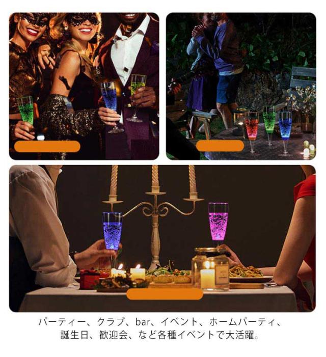 光るシャンパングラス 150ml 6色 6脚セット LED シャンパングラス コップ 6個セット ワイン ゴブレット プラスチック 液体感知 シャンパンフルート センサーネオン カラーLED付き 光る パーティー bar ホームパーティ 誕生日 クリスマス バーナイトクラブ イベント