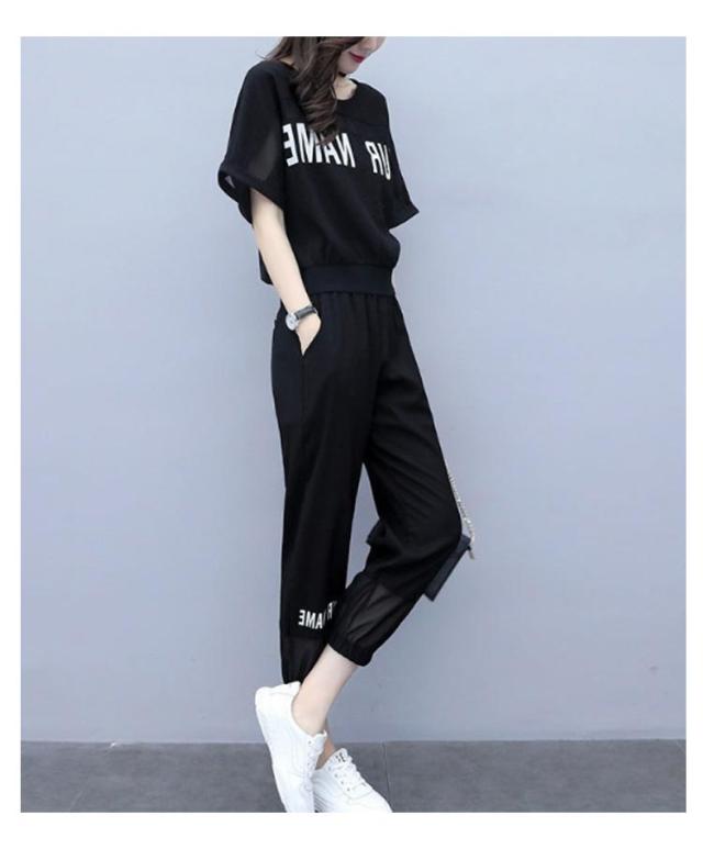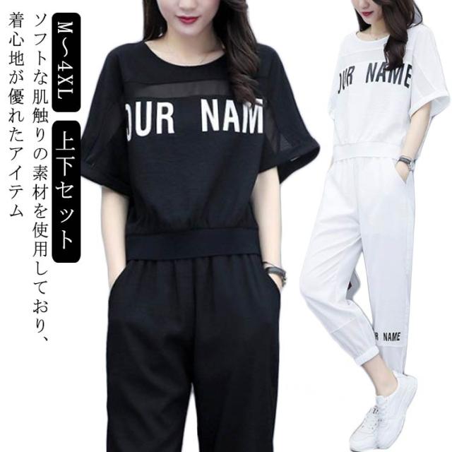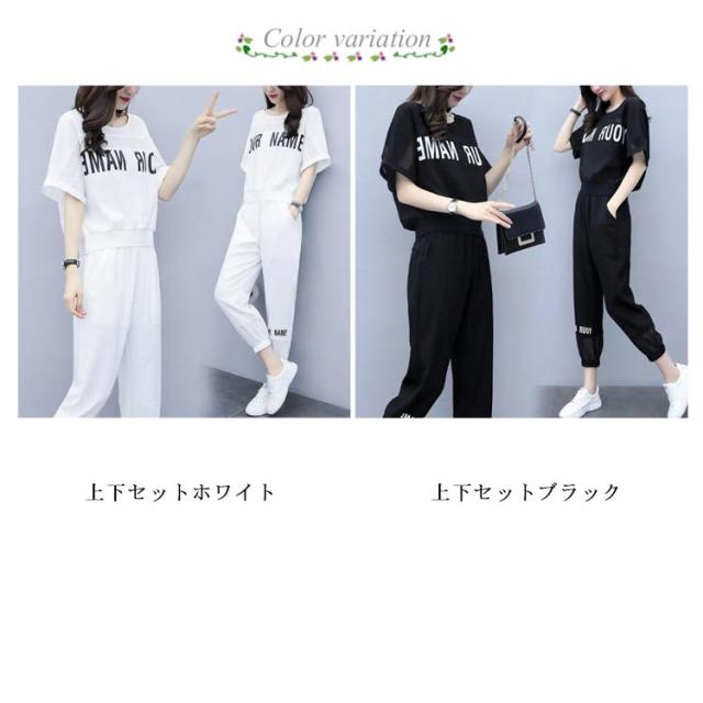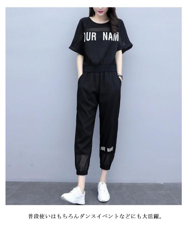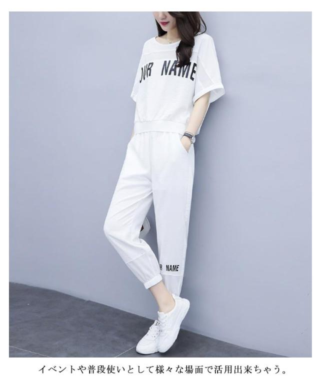 ジャージ セットアップ レディース 夏 半袖 上下セット 2点セット 上下 セット ダンス 黒 白 ブラック ホワイト 半袖 Tシャツ+九分丈パンツ カジュアル きれいめ お洒落 着痩せ 動服 部屋着 韓国風 送料無料
