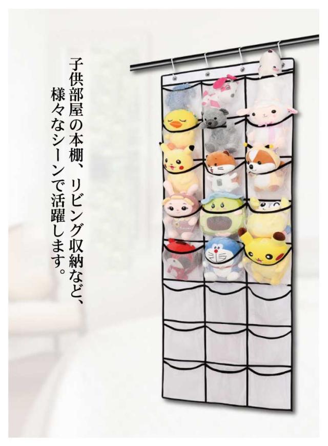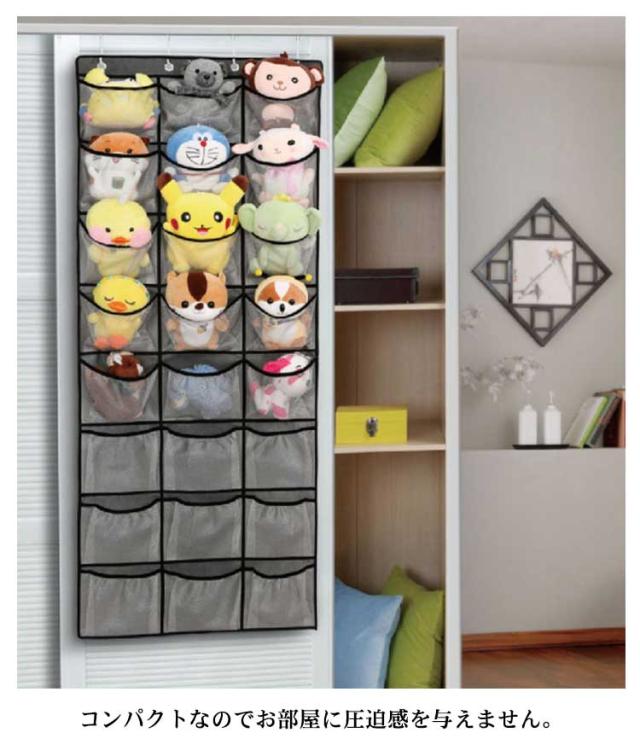 ぬいぐるみウォールポケット 24格 壁掛け 収納 人形 ぬいぐるみ 仕切り ウォールポケット 大容量 棚 不織布 つっぱり式 壁面収納 クローゼット 出し入れ簡単 吊り下げ収納 ハンガー 収納ボックス 収納ケース 帽子 小物入れ フック おもちゃ ドア 突っ張り 送料無料