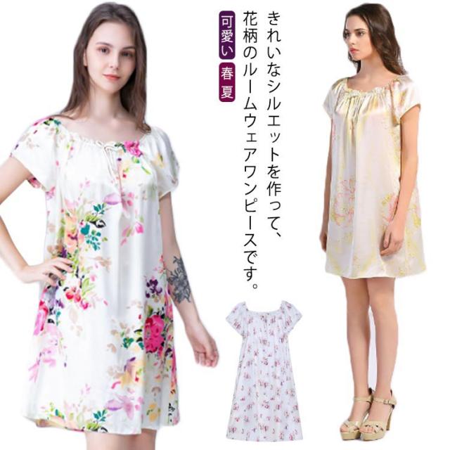 シルク パジャマ ワンピース ルームウェア 半袖 レディース ワンピース 夏 シルクパジャマ ルームワンピース 花柄 半袖パジャマ ネグリジェ 寝巻 部屋着 ナイトウエア ママ プレゼント 母の日