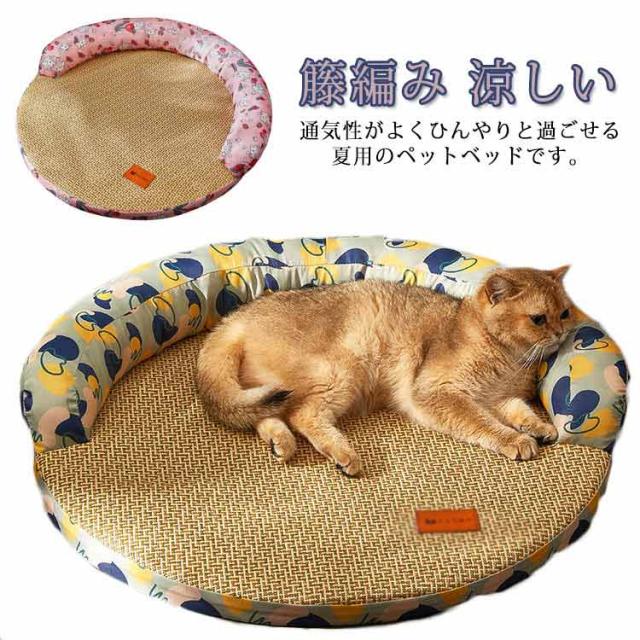 ペットベッド 夏用 猫 犬 ひんやり クール ソファベッド 丸形 籐編み 涼しい 涼感 猫用ベッド 犬用ベッド 熱中症対策 通気性 接触冷感 夏用ベッド 暑さ対策 あごのせ 枕付き 滑り止め 洗える 可愛い 快適