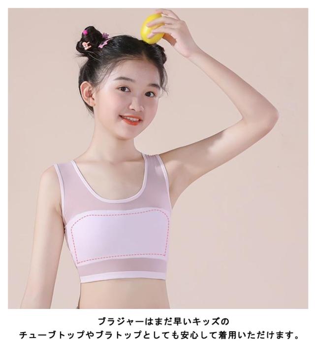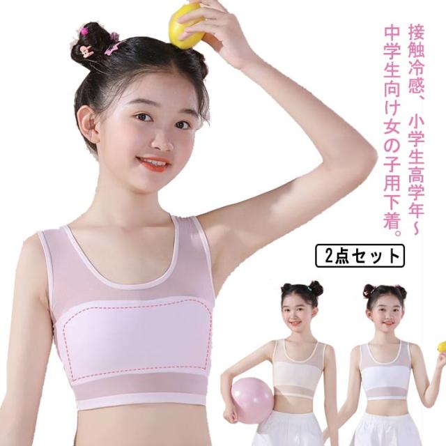 | 接触冷感、小学生高学年〜中学生向け女の子用下着。 ブラの2点セット販売です。 通気性優れるメッシュデザイン! 伸縮性のあるノンストレスな着心地。 ブラジャーはまだ早いキッズのチューブトップやブラトップとしても安心して着用いただけます。 ファーストブラにおすすめ、新学期や新年に向けて新しい下着は色違いでも欲しくなっちゃう! | |