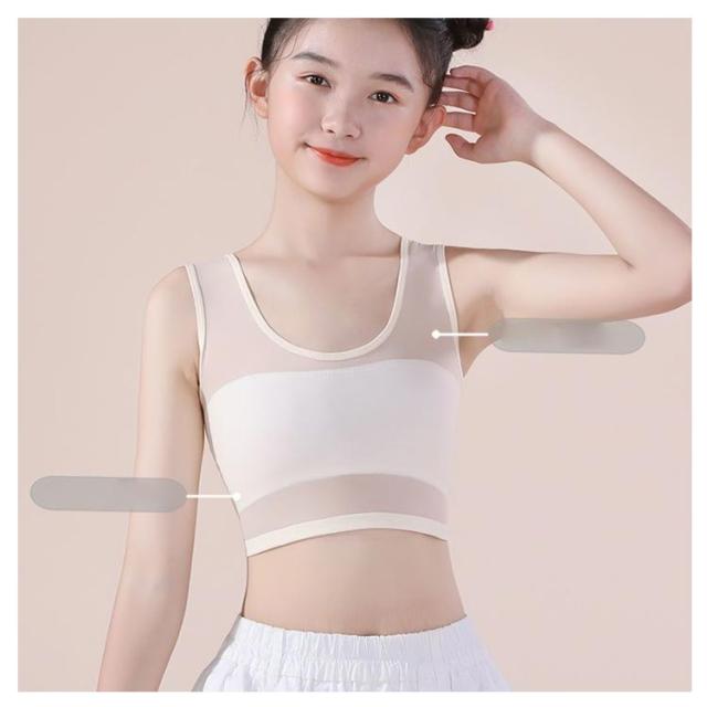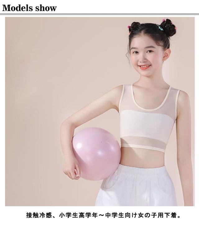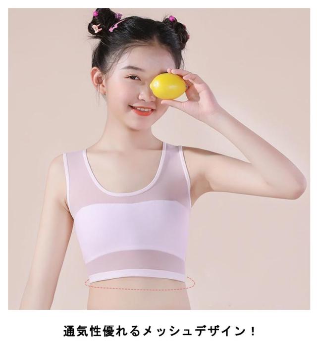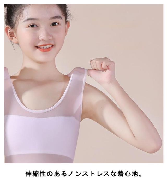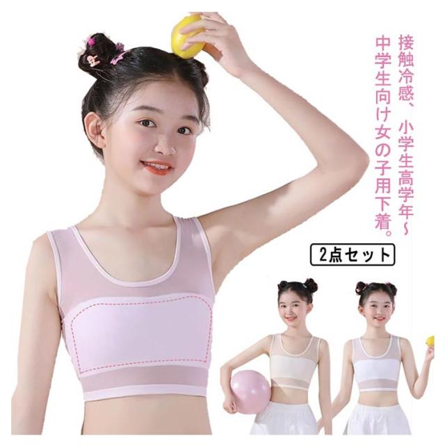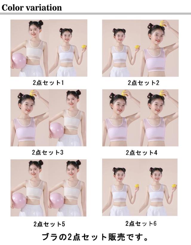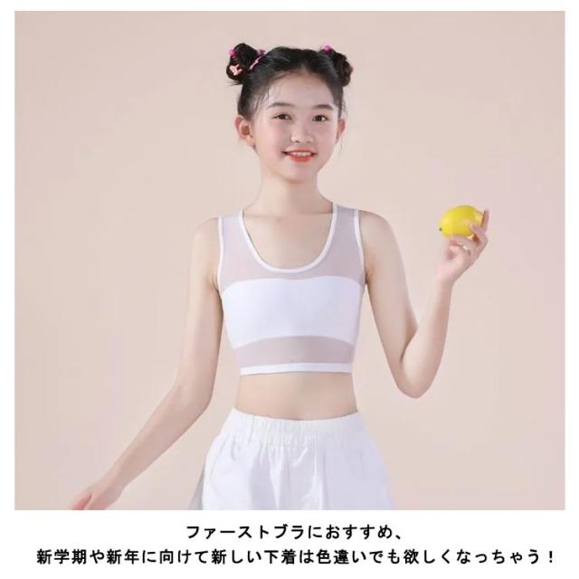 ジュニア ブラ 極薄 メッシュ ブラジャー 肌着 キッズブラ 2点セット インナー 伸縮性 通気性 蒸れにくい 子供 ストレッチ 女児 女の子 学生 シンプル S M L