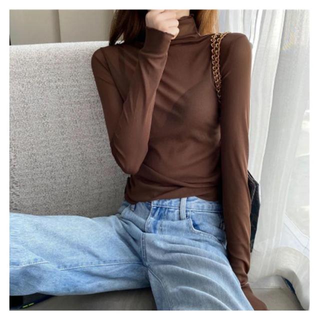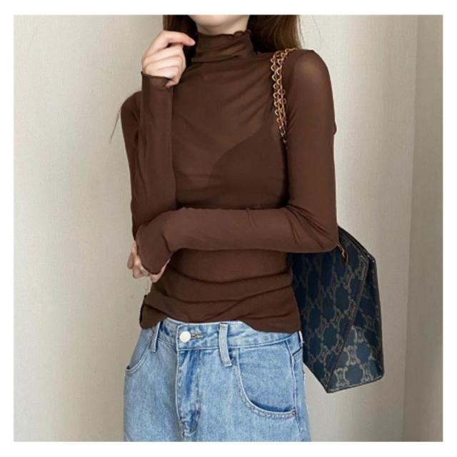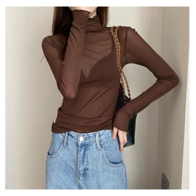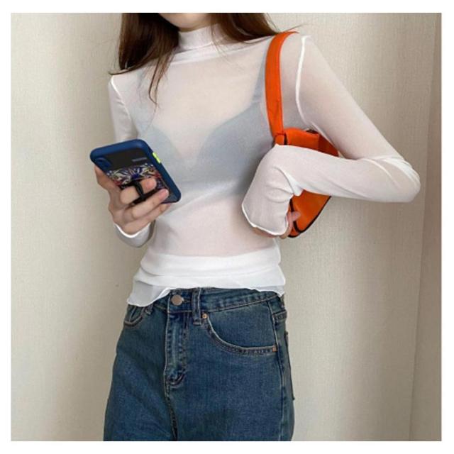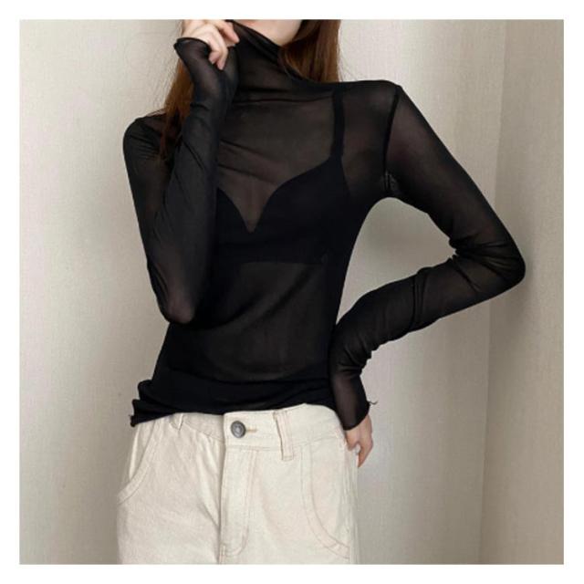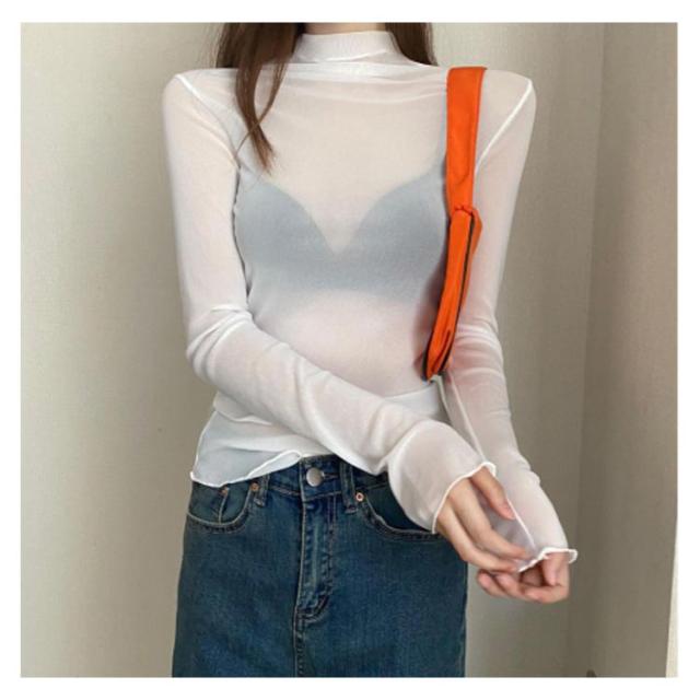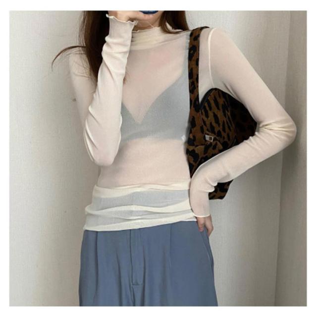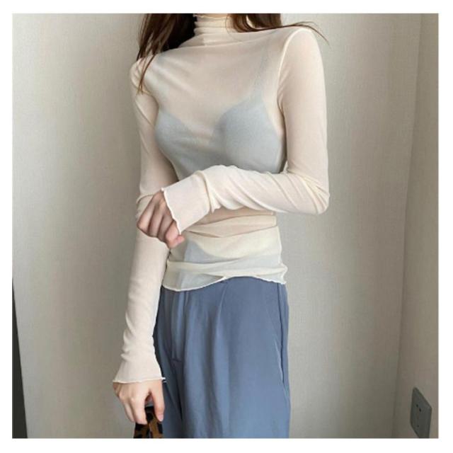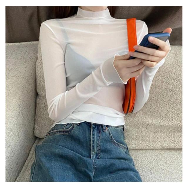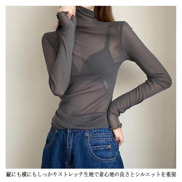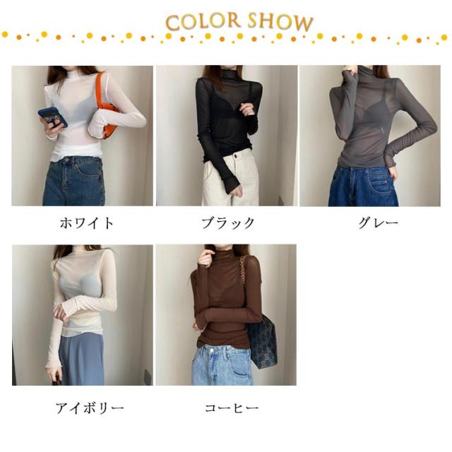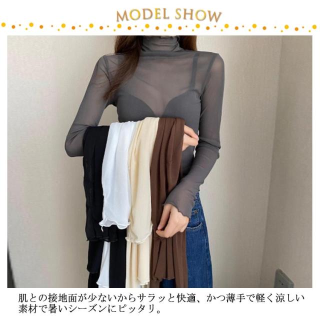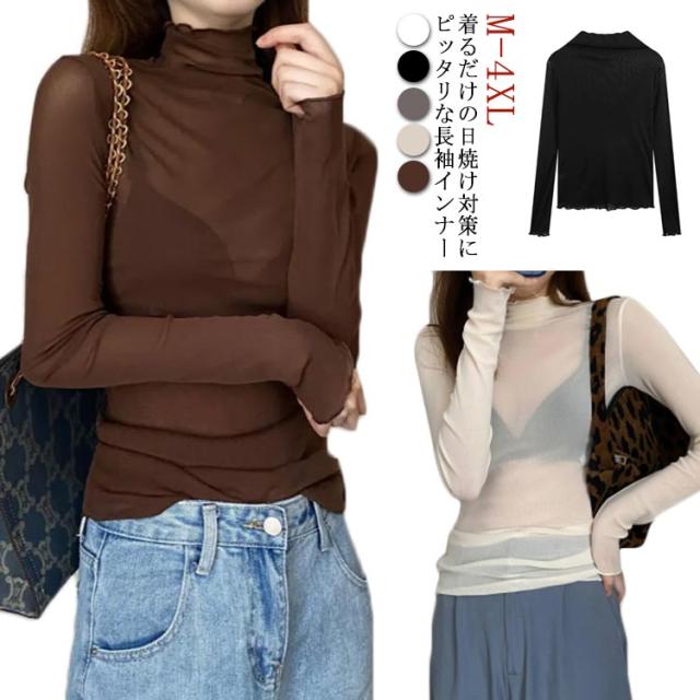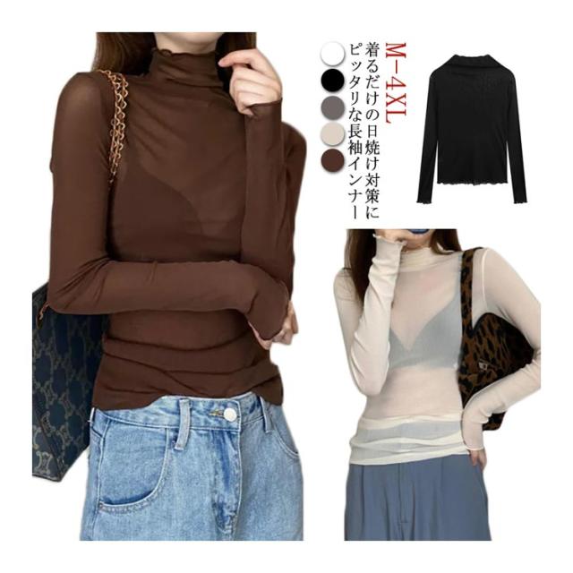 シアートップス ボトルネック 長袖 薄手 ハイネック レディース 紫外線対策 UVカット シアー トップス UV対策 接触冷感 クール冷感 シースルー トップス 冷房対策 レイヤード インナー セクシー 肌見せ きれいめ ミセス 20代 30代 40代 50代 送料無料 大きいサイズ 無地