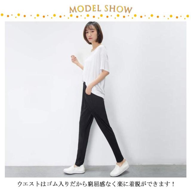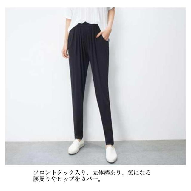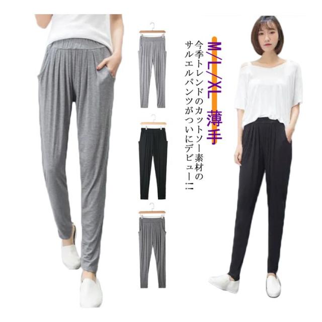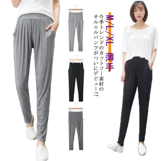 サルエルパンツ カットソー素材 レディース 接触冷感 薄手 春夏 美脚 楽チンパンツ テーパードパンツ ストレッチ リラックス 無地 ヨガ 部屋着 ダンス 運動着 女性用 パンツ スウェット おうち時間 ルームウェア 送料無料 ギフト プレゼント ストレスフリー