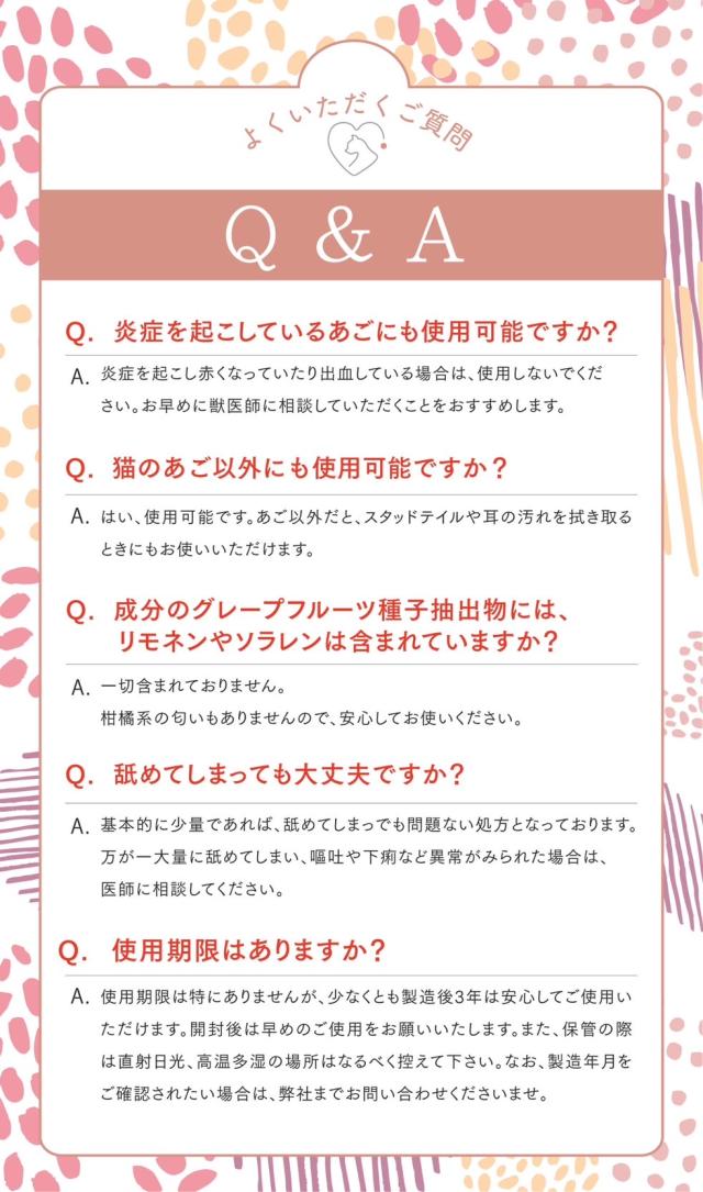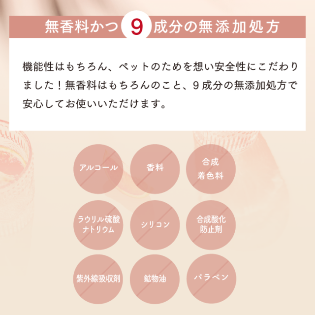 ● 使用上の注意:ペットの肌に傷・湿疹等の異常がある時は使用しないでください。異常があらわれたときは使用を中止してください。目に入った時は直ちに洗い流してください。乳幼児やペットの手の届かないところに保管してください。直射日光は避けて保管してください。ナー