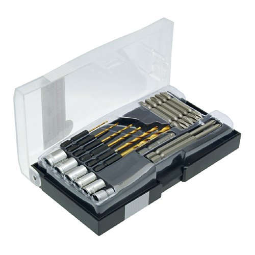 ・●6.35mm角ソケットコマ/6・7・8・10・12・13mm ●6.35mm差込角用ソケットアダプター ●チタンコーティングハイス鋼六角軸ドリル刃/1.5・2.0・2.5・3.0・4.0・5.0mm ●65mm両頭ビット/+No.1/+No.2×2/+No.3/-6mm ●100mm段付ビット/+No.1/+No.2