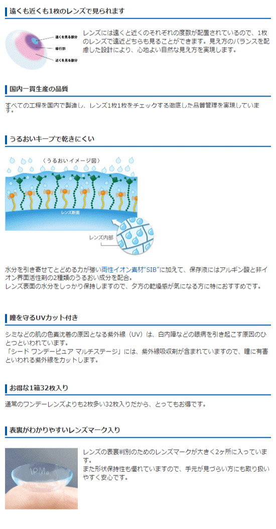 シード 1day Pure ワンデーピュア マルチステージ 2箱(1箱32枚入)遠近両用 コンタクトレンズ 1日使い捨て 送料無料 ポスト便