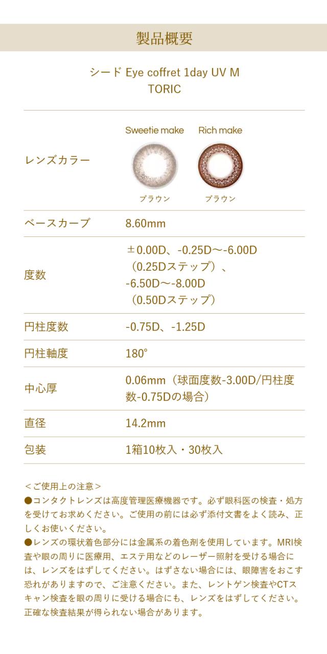 シード Eye Coffret 1day TORIC アイコフレワンデーUVM 乱視用 2箱(1箱10枚入)コンタクトレンズ 1日使い捨て 送料無料 ポスト便 新色