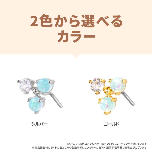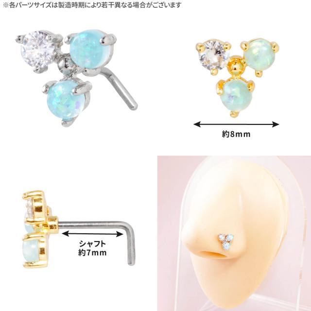 ラウンド オパール トライアングル ノストリル 鼻ピアス 20G ジルコニア 軟骨ピアス ボディピアス フェイクオパール 三角 トリプル 鼻ぴ